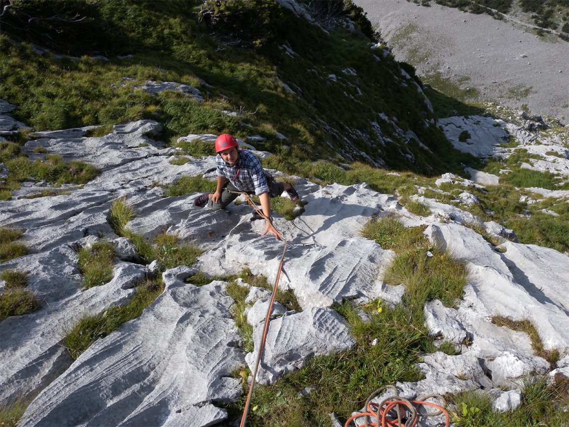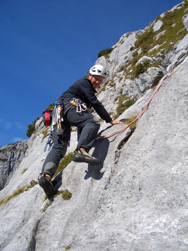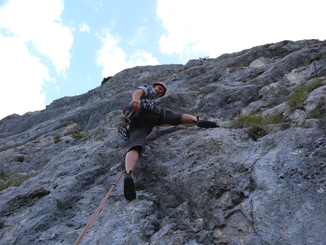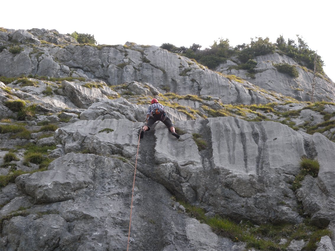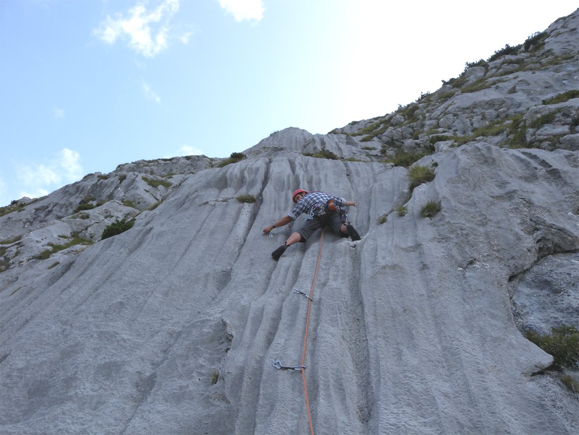 „Kunterbunt“ ist eine sehr beliebte Mehrseillängentour an der Multerkarwand. Die Tour wird nach oben hin immer besser - schöne Rillenplatten wechseln mit griffigen Wandpassagen. Im unteren Teil ist nicht jeder Griff 100 % fest, aber das beeinflusst nicht den Gesamtcharakter dieser Tour.