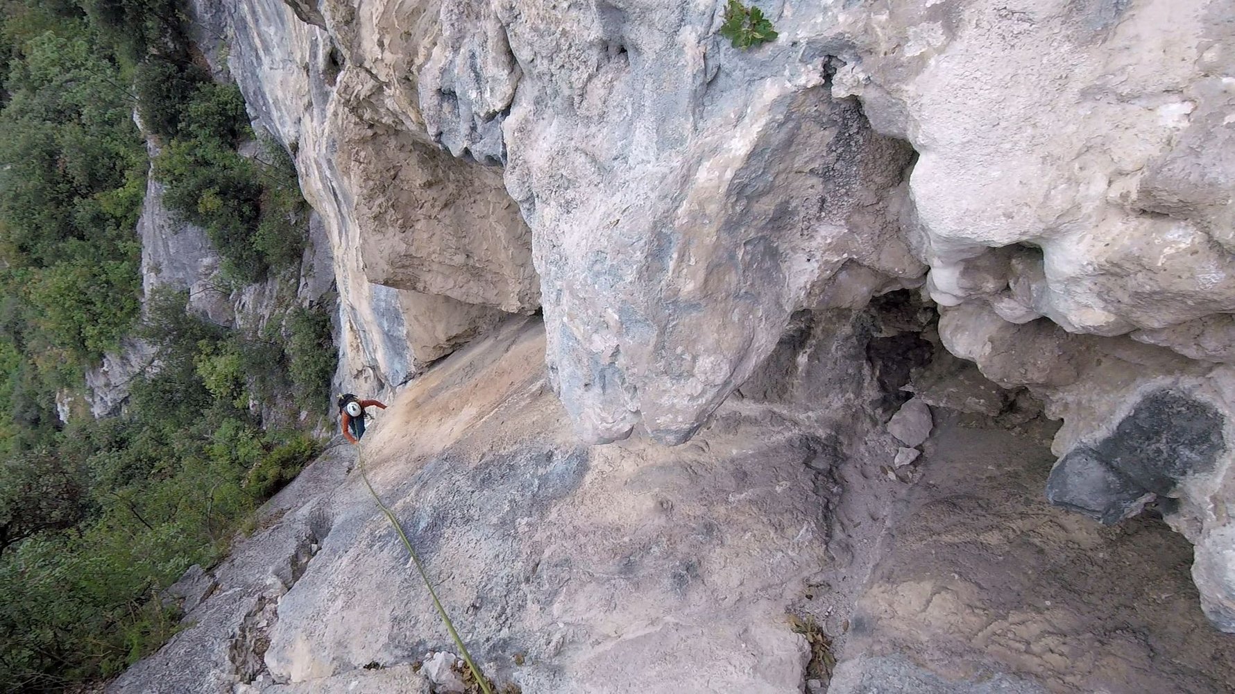 Die Tour hat etwas alpines Flair - keine Plaisirkletterei (die Sanduhrschlingen sind tlw. schon etwas marode, evtl. eigene mitnehmen...). Die Tour ist schon etwas älter, manche Passagen sind schon etwas glatt poliert.