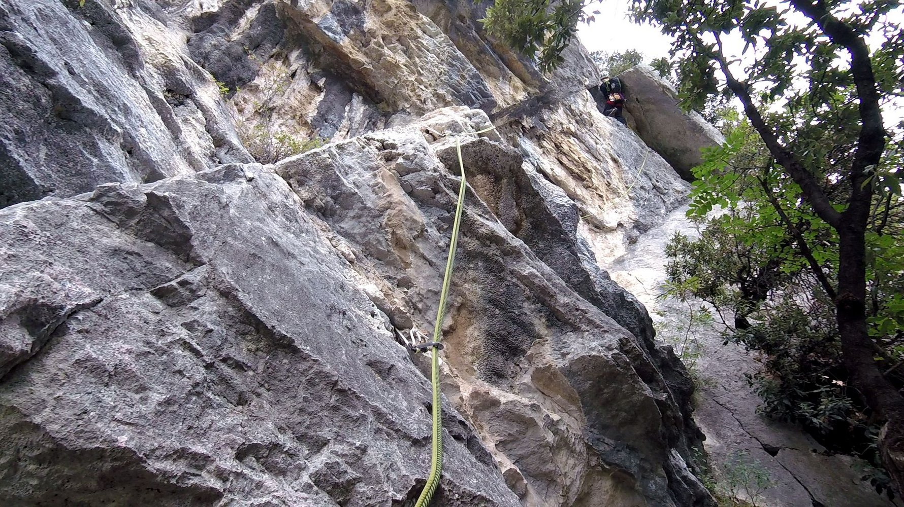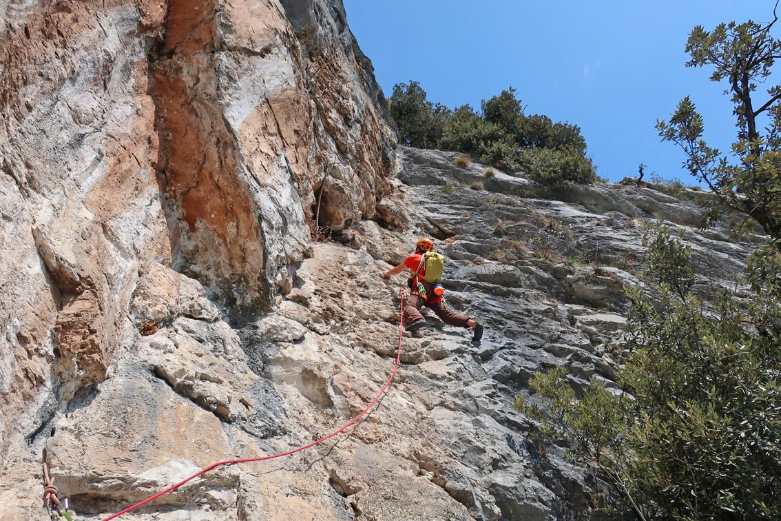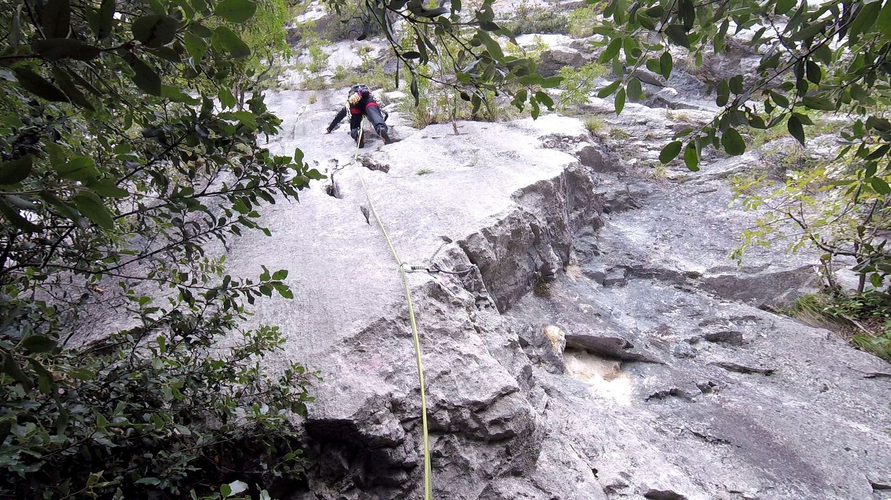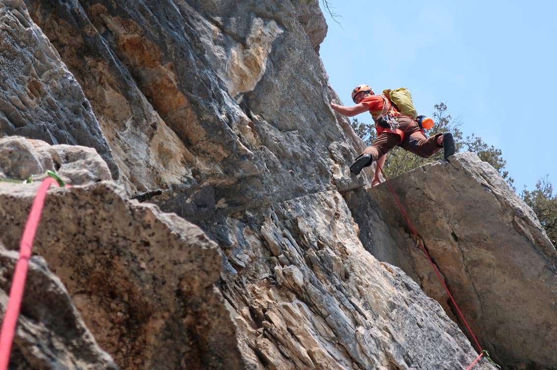 Die Route La piccola piramide ist ähnlich wie die Scalette dell' Indria ein Klassiker an der Coste dell' Anglone - und das zu recht! Die Kletterei ist sehr abwechslungsreich - unten Platten, dann raue schöne, steilere Wandpassagen und ab der Mitte schöne Verschneidungen. Das Highlight ist der finale waagrechte Quergang zur vorderen letzten Seillänge, bei der man sich mit reichlich Luft unterm Hintern die Finger lang ziehen muss. Angenehm ist der "gestufte" Charakter der Route - oft gibt es kleine Bänder und Absätze, die das ganze (mit Ausnahme der beiden Seillängen am Ende) nicht ganz so spektakulär erscheinen lassen. Gesamt eine lohnende Grill&Klucknerroute, die man auch in Erwägung ziehen kann, wenn bei der "Scalette dell' Indria" der Andrang zu groß ist.