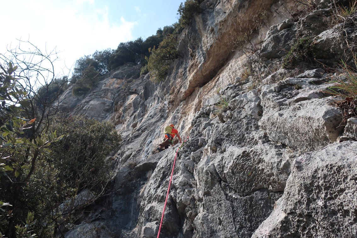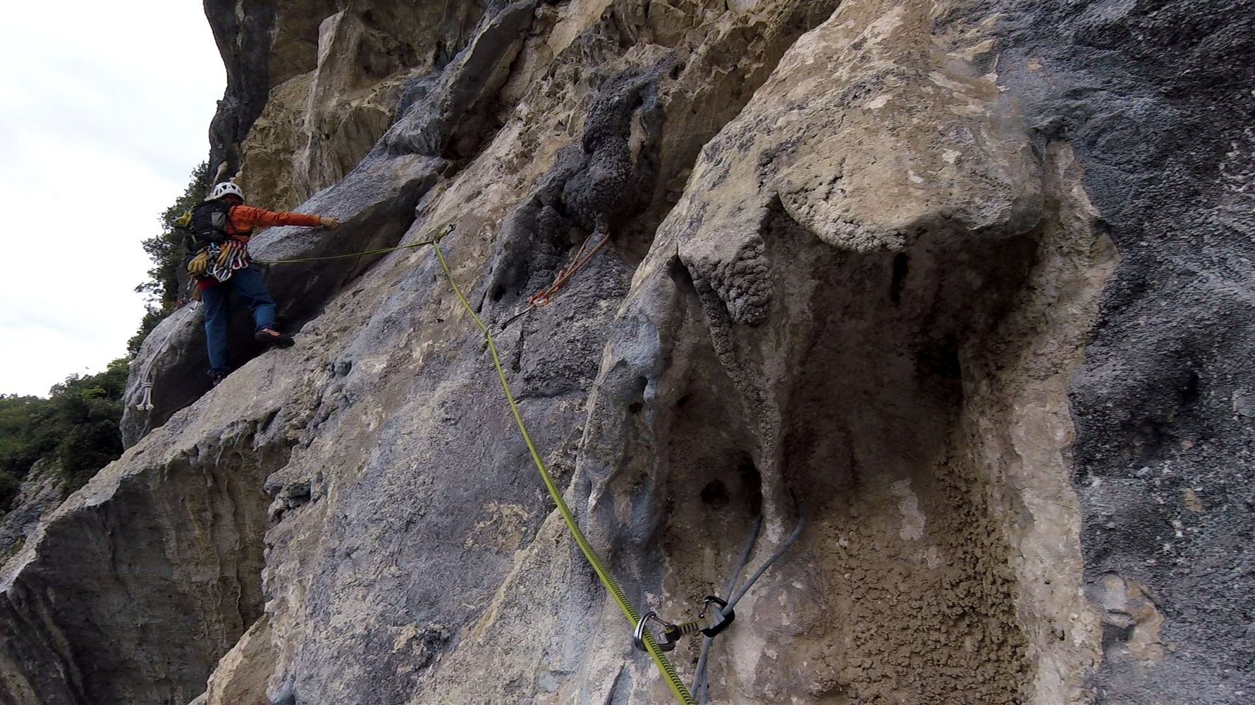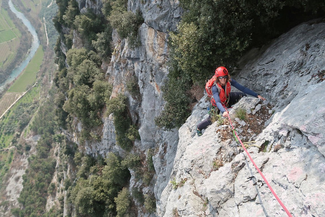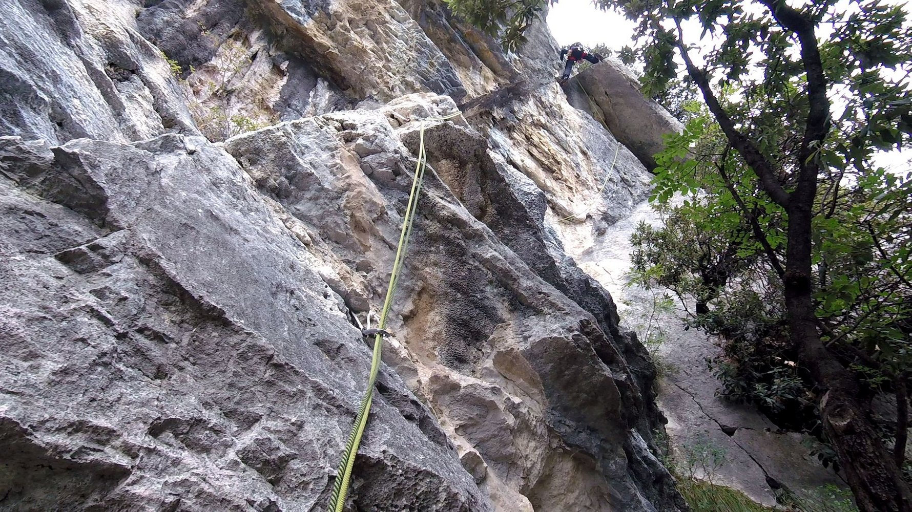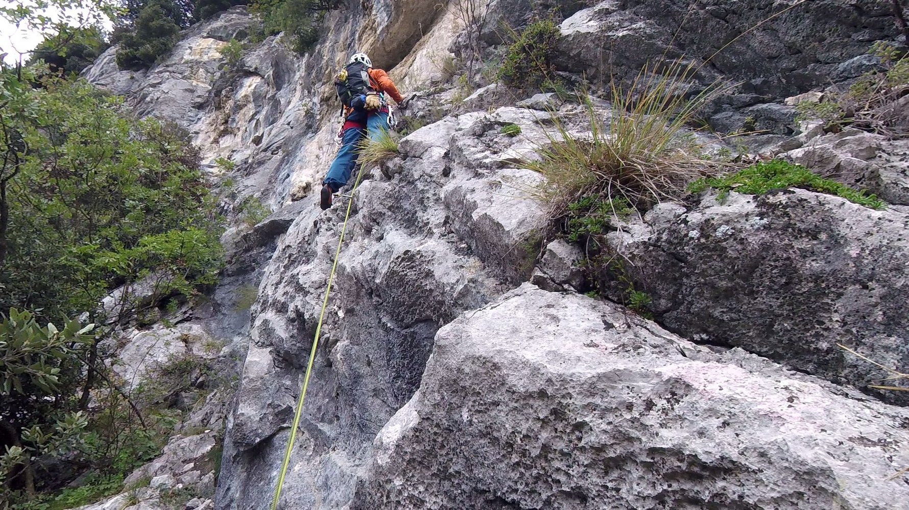 Gutmütige Alpintour ganz im Stil von Grill & Kluckner - einen Tick anspruchsvoller als die "Scalette dell' Indria". Die Route ist mit sehr vielen Sanduhren, einigen Normalhaken und Bohrhaken gesichert. Man könnte die Absicherung als "Gut" bezeichnen, aber kein Plaisir (im unteren 4ten Grad manchmal etwas weitere Abstände).