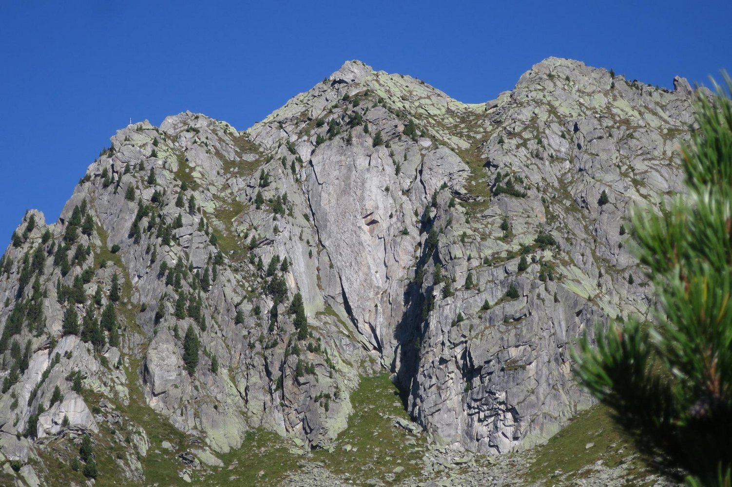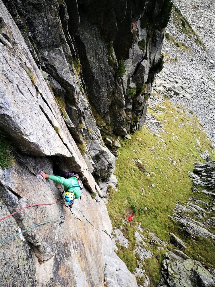 Einstieg gleich rechts des Dachls bei einem markanten Riss wo einige Nägel stecken. Die Route führt in bestem Granit über eine Reihe von Rissen und Verschneidungen in logischer Linie durch die steile Wand. Wo nicht mobil abgesichert werden kann stecken einige Nägel (Siehe Topo) an den Ständen sind Bohrhaken. Geboten wird athletische Riss- und Verschneidungskletterei mit herrlicher Aussicht über das ganze Ahrntal.
