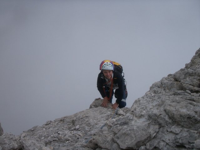 Über Grat rechts haltend (östlich) zum Gipfel, über Steig zur Karlsbaderhütte und weiter zur Dolomitenhütte (1,5 Stunden).