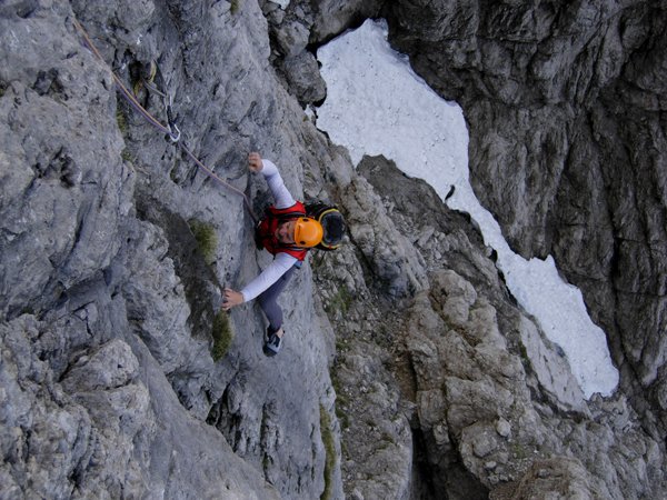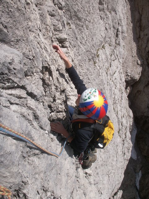 Dolomit-Fels, Alpine, größtenteils neue Tour über die Laserz-Südwestwand, fester Fels, direkte Linie, eine der längsten Touren an der Südwestwand!
