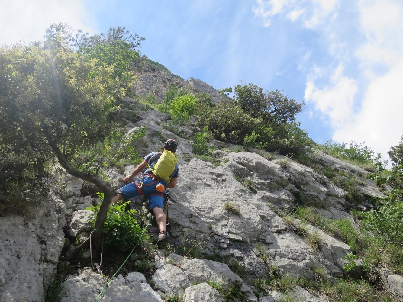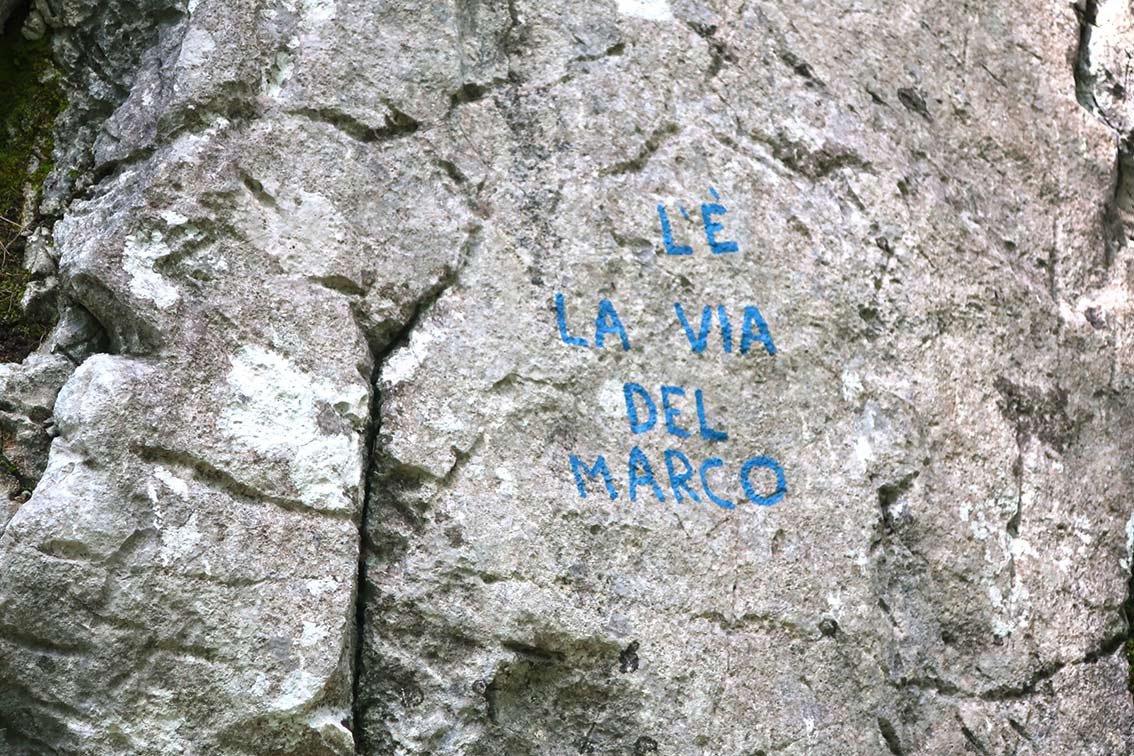Die Route Le la via del Marco ist eine semialpine Sportklettertour an der Antiscudo Felswand am Wandfuß der Cima alle Coste. Die Route hat als kräftiges Highlight eine leicht überhängenden Riss in der dritten Seillänge, aber auch die anderen Passagen sind bis auf wenige Stelle brauchbare Klettermeter. Die Absicherung - sehr viel Haken (gebohrte, dicke Stichhaken) und Normalhaken. Der Anstieg ist durchaus gelungen, man kann diesen als schöne Sockeltour auf die Liste setzen.