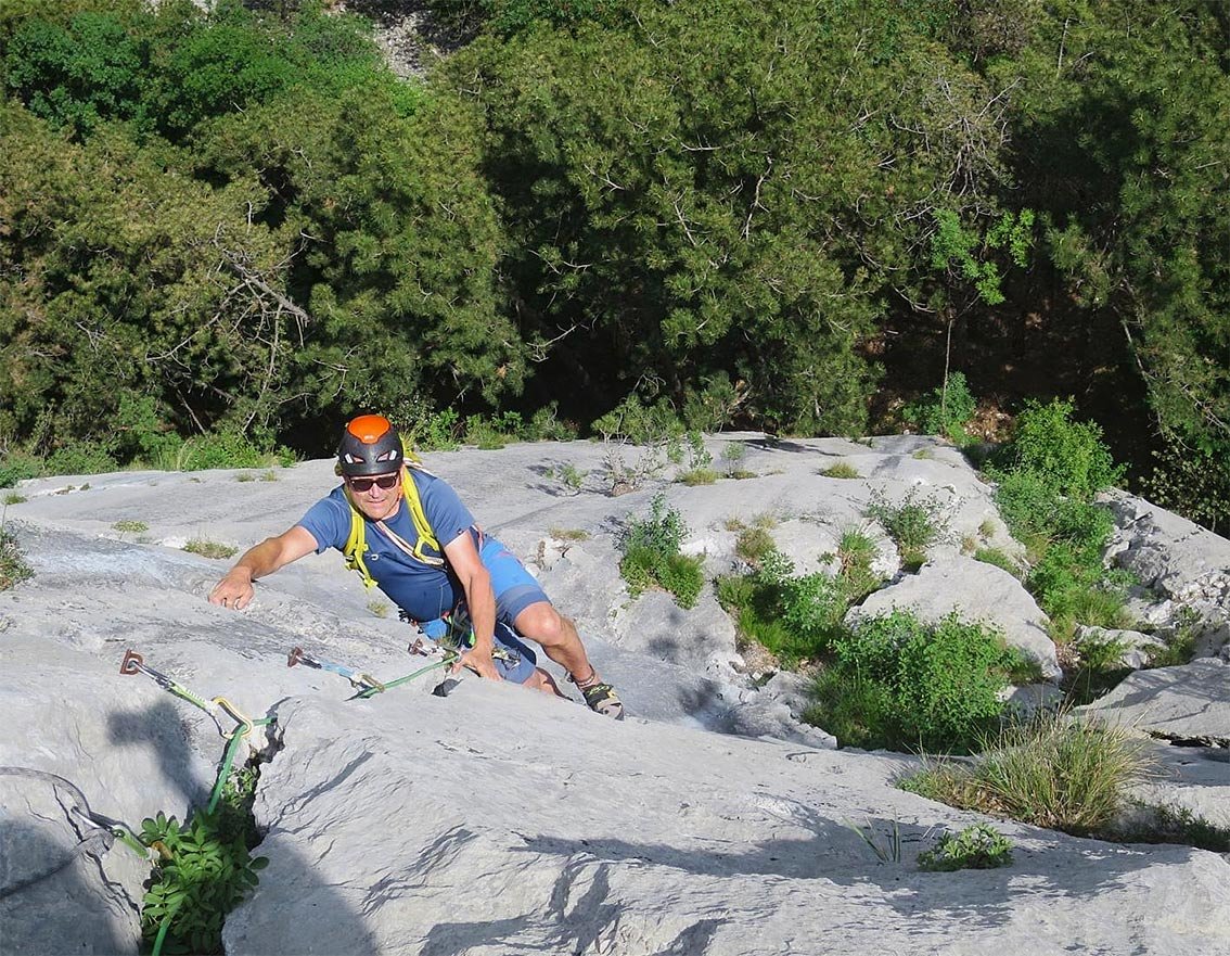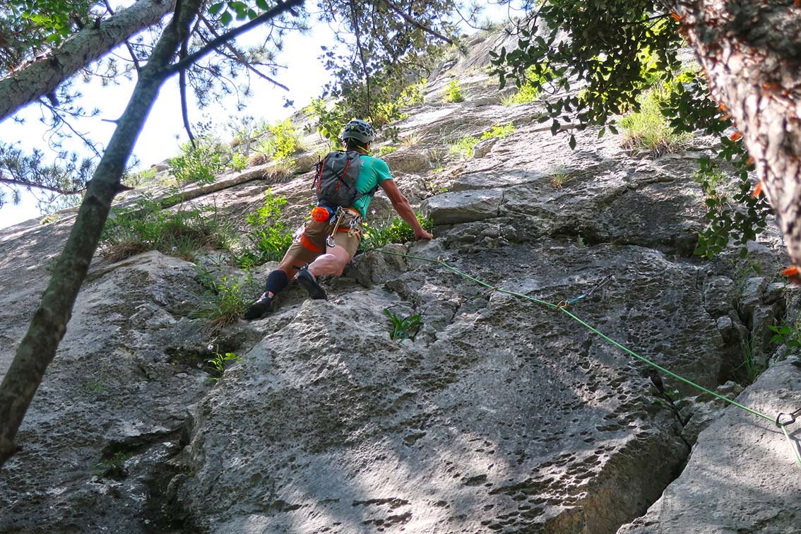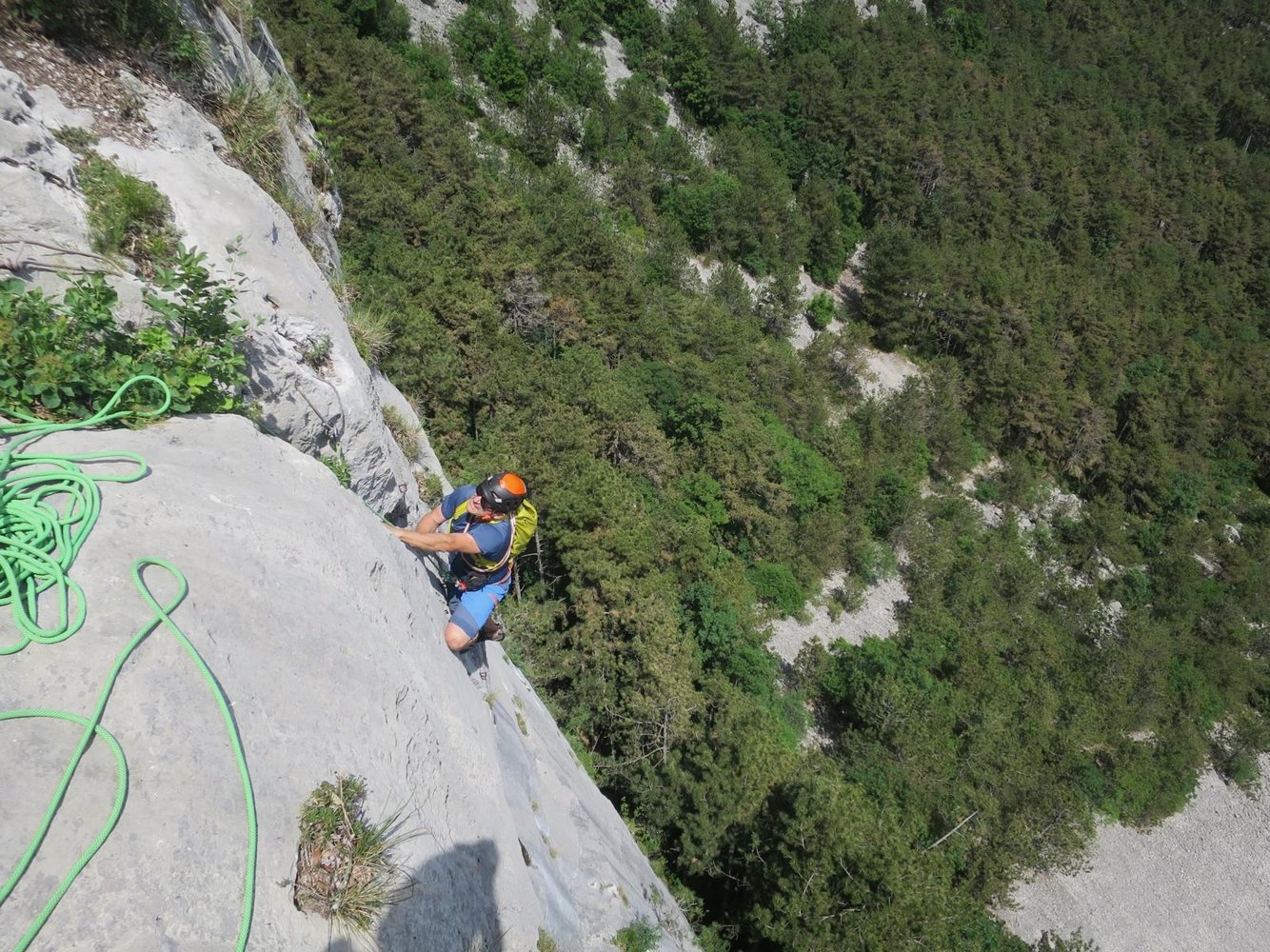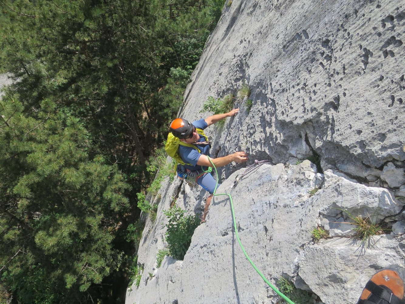 Achtung: Die kurze Plattenpassage beim Abstieg ist bei Nässe heikel (es stecken aber Bohrhaken, man kann sich bei Bedarf sichern)!