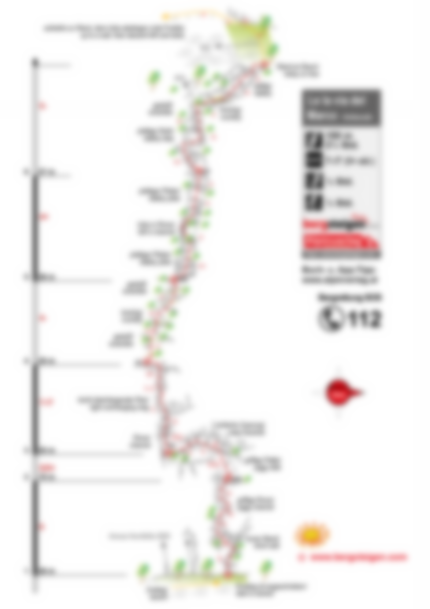 Oben kurz zu einer Felswand (roter Pfeil) aufsteigen, dort dann nach links auf dem Pfad (im steilen Schutt nicht zu tief!) bis man in grobes Schuttgelände und Pfadspuren kommt, azf dueseb Pfadspuren links absteigen. Das Gelände wird steiler und verläuft über Platten - dort genau auf den Pfad und Steinmännchen (Markierung) achten, am Ende eine kurze, etwas ausgesetzte Plattenquerung zum Schutt. Vom Schuttfeld auf Pfadspuren hinunter zum Schotterradweg und auf diesem zurück zum Ausgangspunkt.