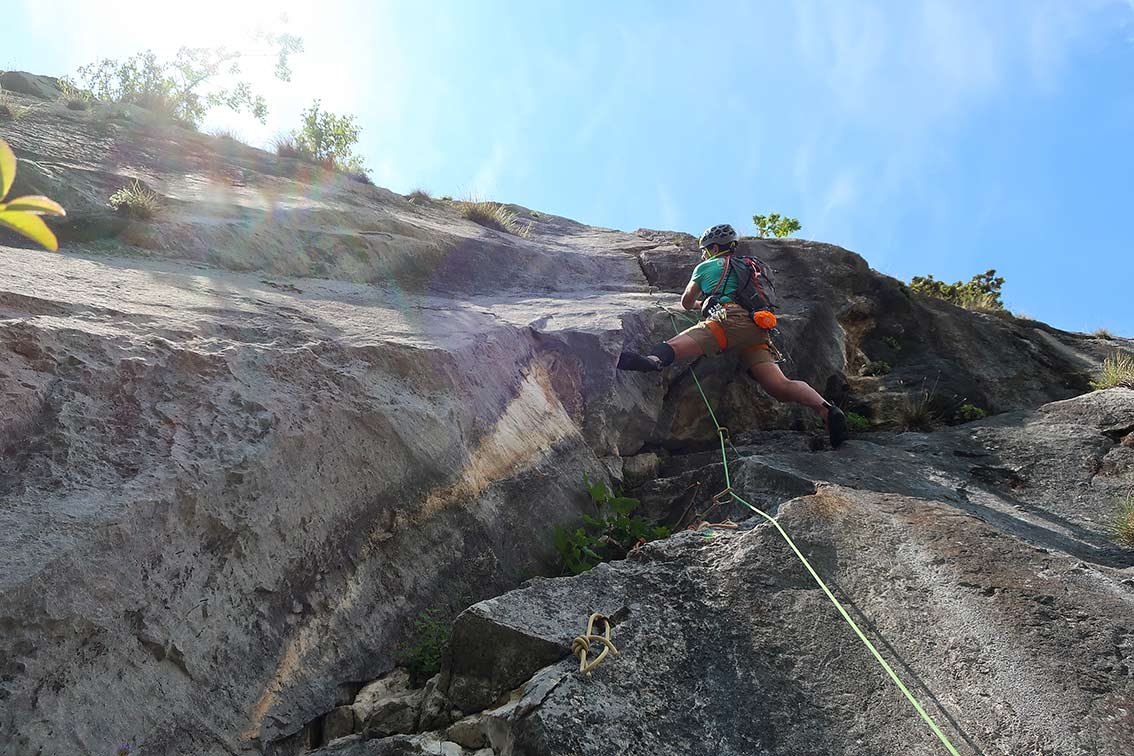 Nach längeren Regenfällen ist vor allem die Einstiegsseillänge feucht.