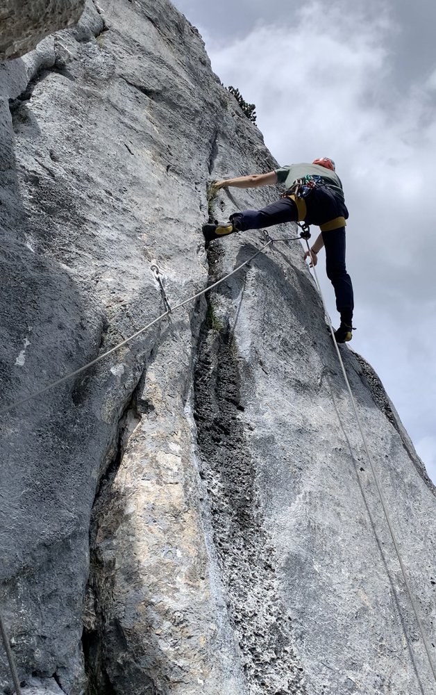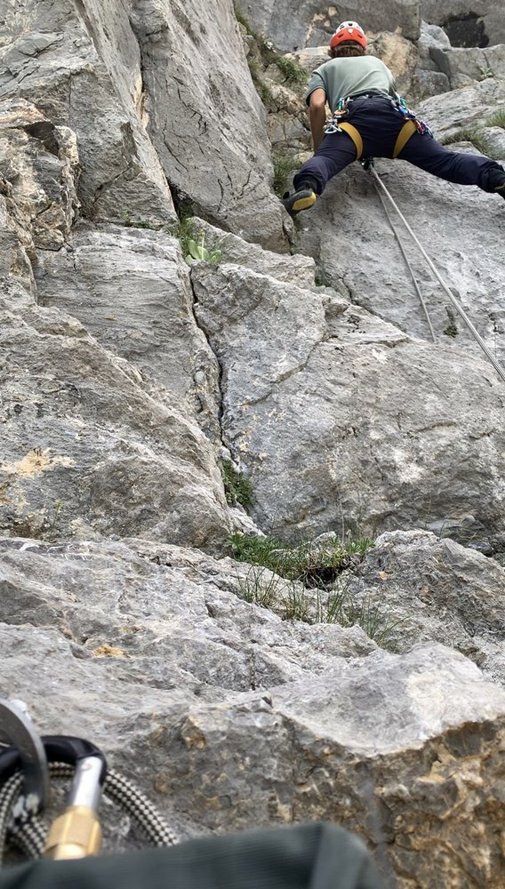 Alpine Sportkletter Route mit apinem Charakter! Die Route "Lebens Weise" ist der neue Direkteinstieg der Route Lebens Reise. Die Route ist schöner zu klettern als der linke Originaleinstieg. Die Route hat mehrere Highlights so wie der ausgesetzte Quergang in der 4SL oder der markante Pfeiler in der Mitte (sehr cool). Der Fels ist gut, aber auch manchmal splittrig. Die Route ist noch sehr neu, deshalb kann der eine oder andere Griff oder Tritt locker sein!