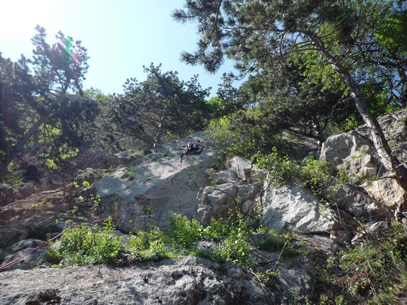 Der dezente Kletterwandbau im Naturpark brachte eine lohnende Linie hervor, die sich rd. 45 m rechts des bereits beliebten Steinbockalarms durch die grünsten Zonen zwischen Sonnenuhrwaand und Totenköpfl hinaufschlängelt. Der Fels ist gut und auch reichlich vorhanden. In der 1. u. 2. Seillänge wurden von den Erstbegehern winzige Griffe in die für den Genießer zu glatten platten geklebt. Absicherung ist sehr gut.