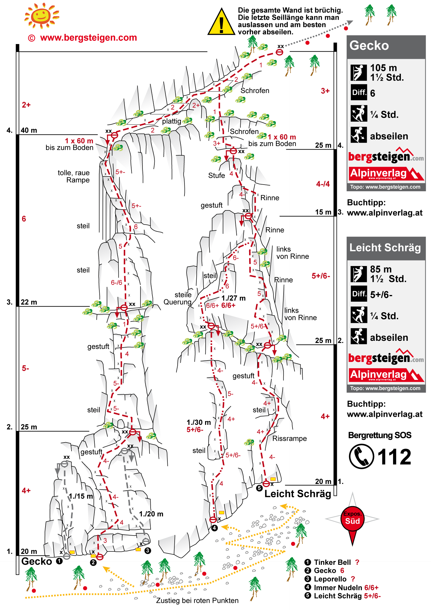 Wer schon mal dort ist, kann auch gleich die Gecko oder die zwei Seillängen der "Immer Nudeln" machen - siehe Topo.