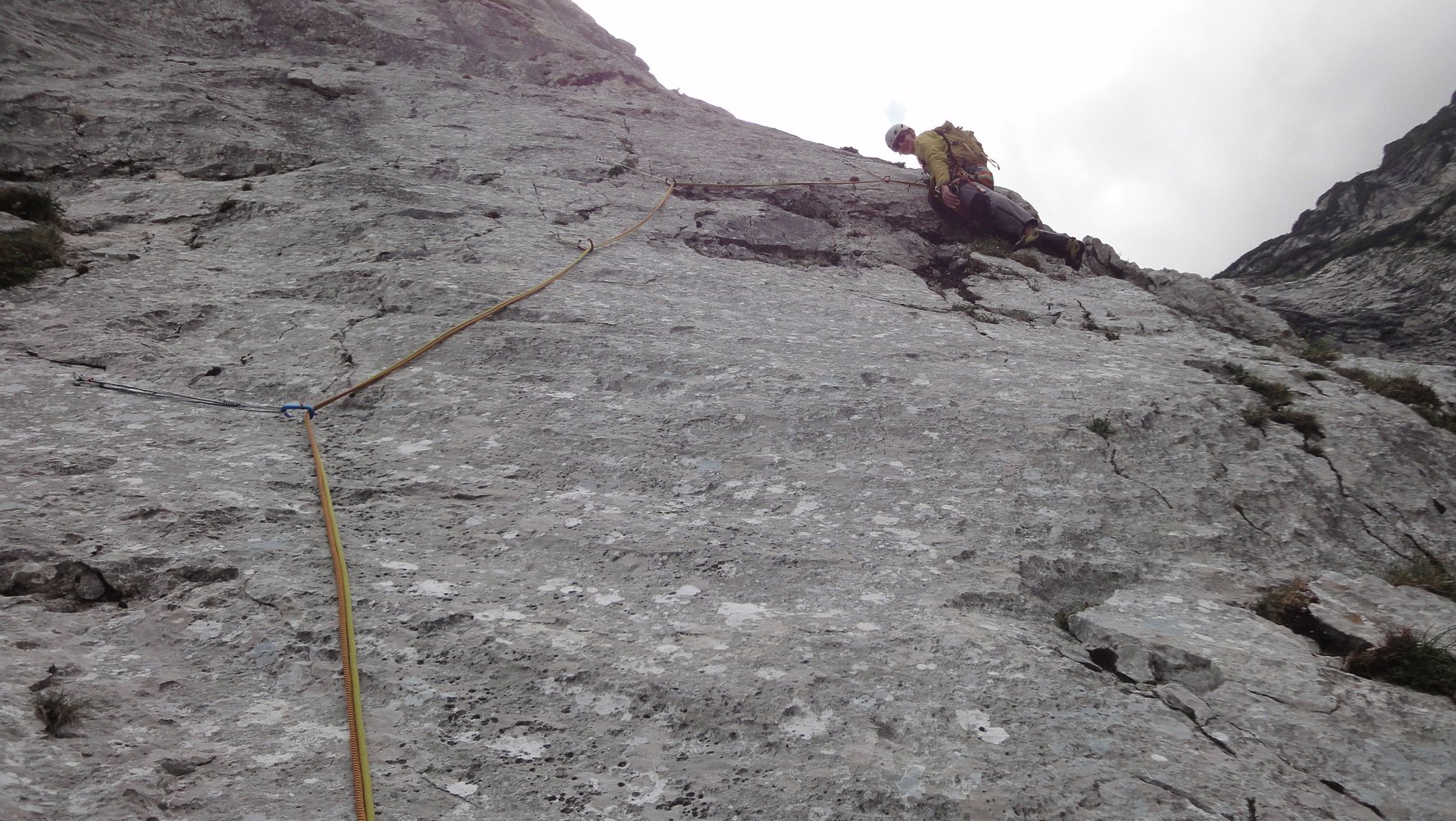 SL3: Steiler Einstieg durch guten Fels, gefolgt von nicht ganz so kompaktem flacheren Gelände.