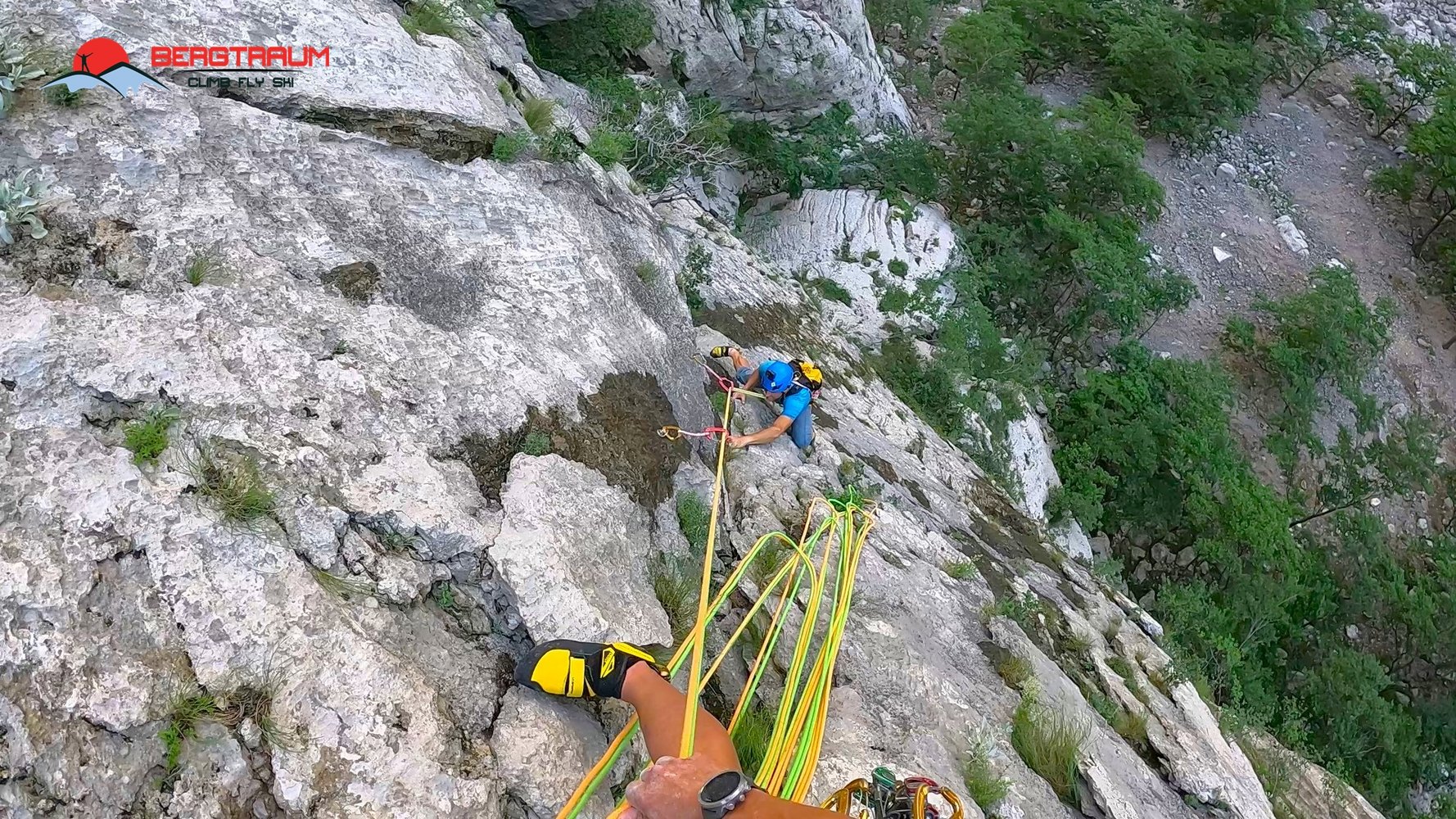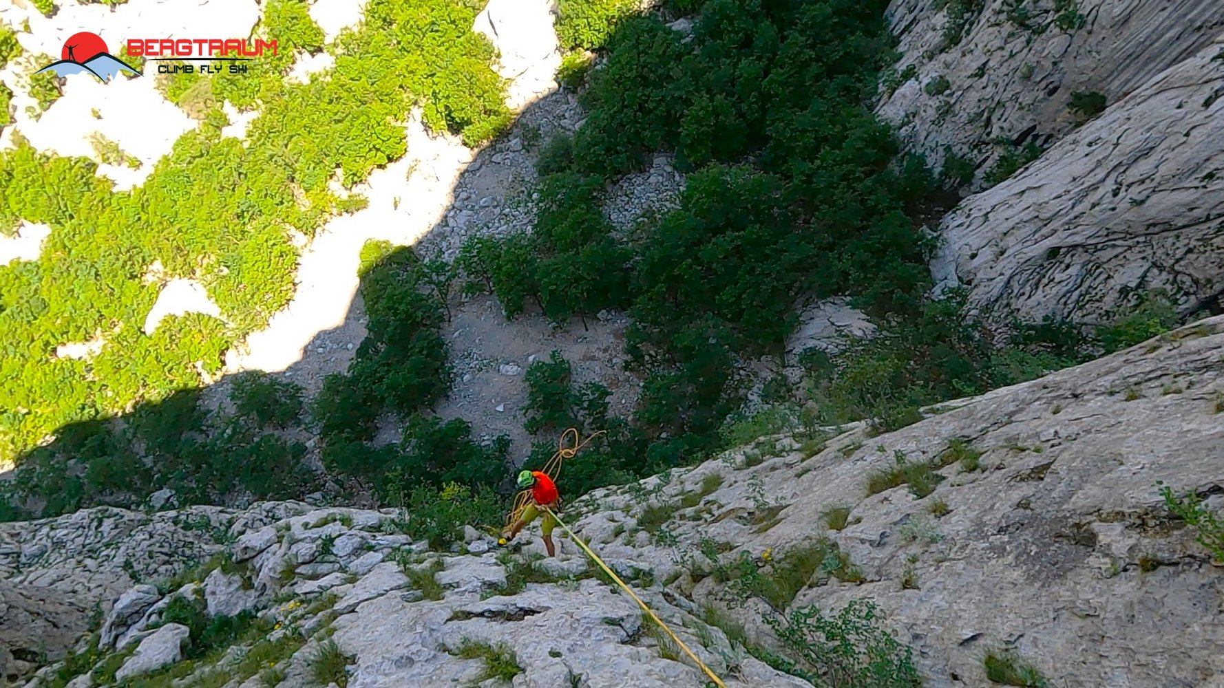 Vom letzten Stand der Tour entweder noch eine SL rauf und dann nach Süden (2x 60, 1x 20 m) abseilen und um den Stup herum. Oder gleich die gesamte brid ca veliki cekic anhängen und auf den Anica Kuk rauf. Oder in der Nordseite bleiben und 3x 40 m abseilen zum Einstieg. Von dort weiter runter wie Aufstieg zum Ausgangspunkt.