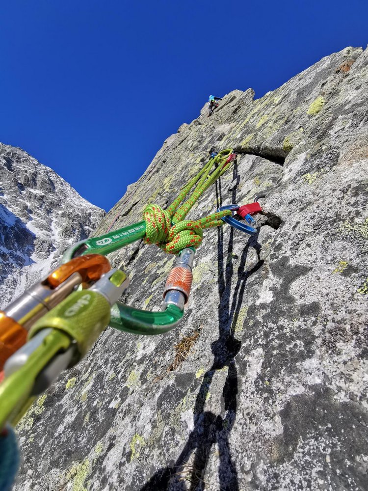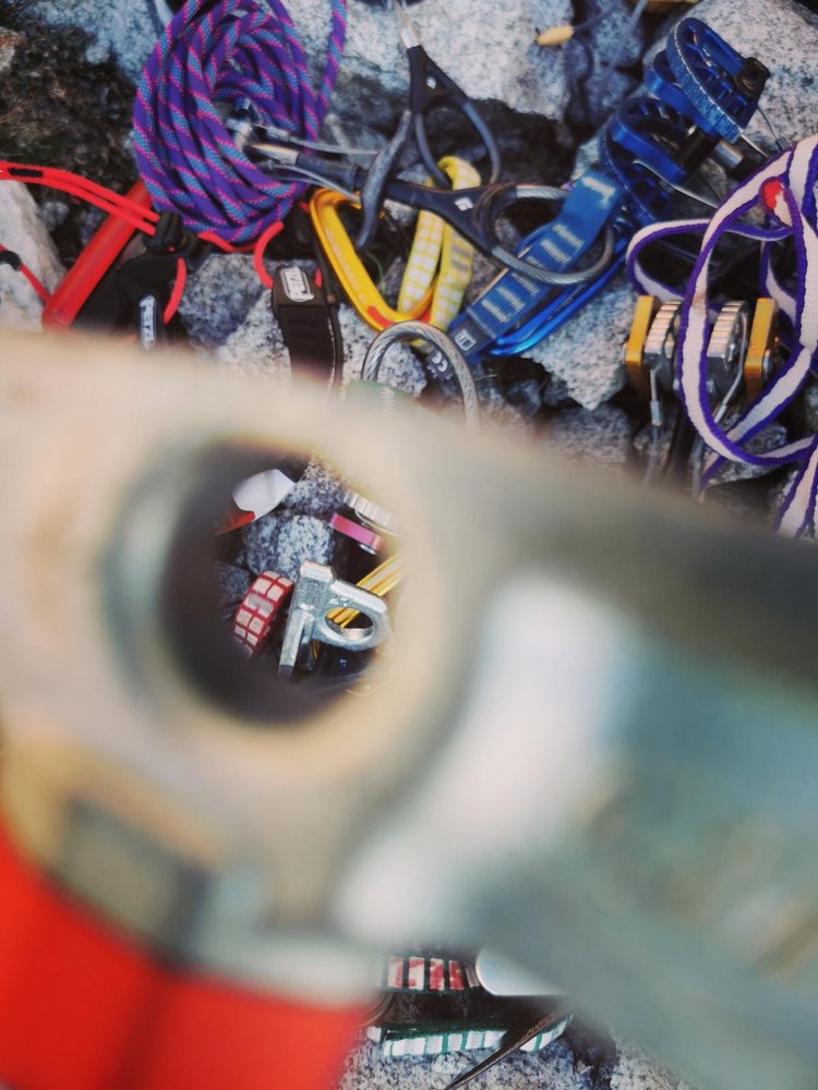 12 Express, 2 umfangreiche Sortimente Friends, Keile, eventuell Haken und Hammer, Doppelseil