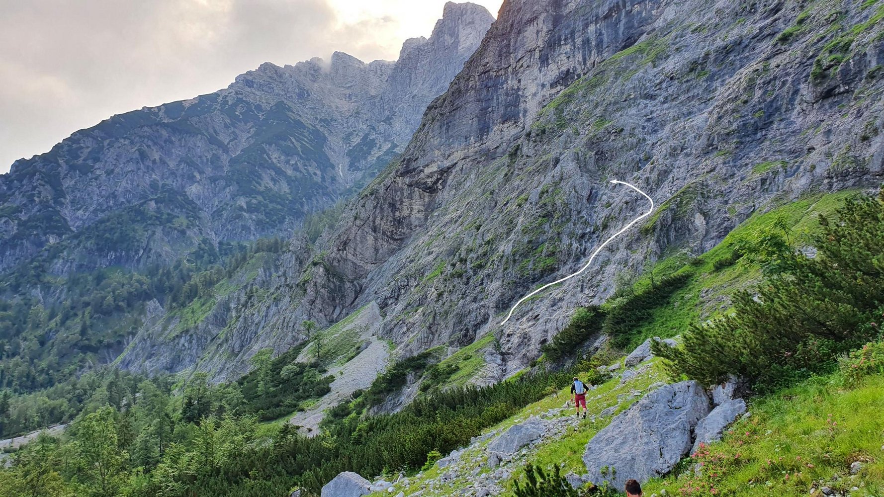 Vom Gipfel des Schermberges steigt man auf dem Wanderweg zur Welser Hütte ab (eine Steilstufe unten ist versichert, A/B, der Weg ist gut markiert). Von der Welser Hütte hinunter zum Almtaler Haus.