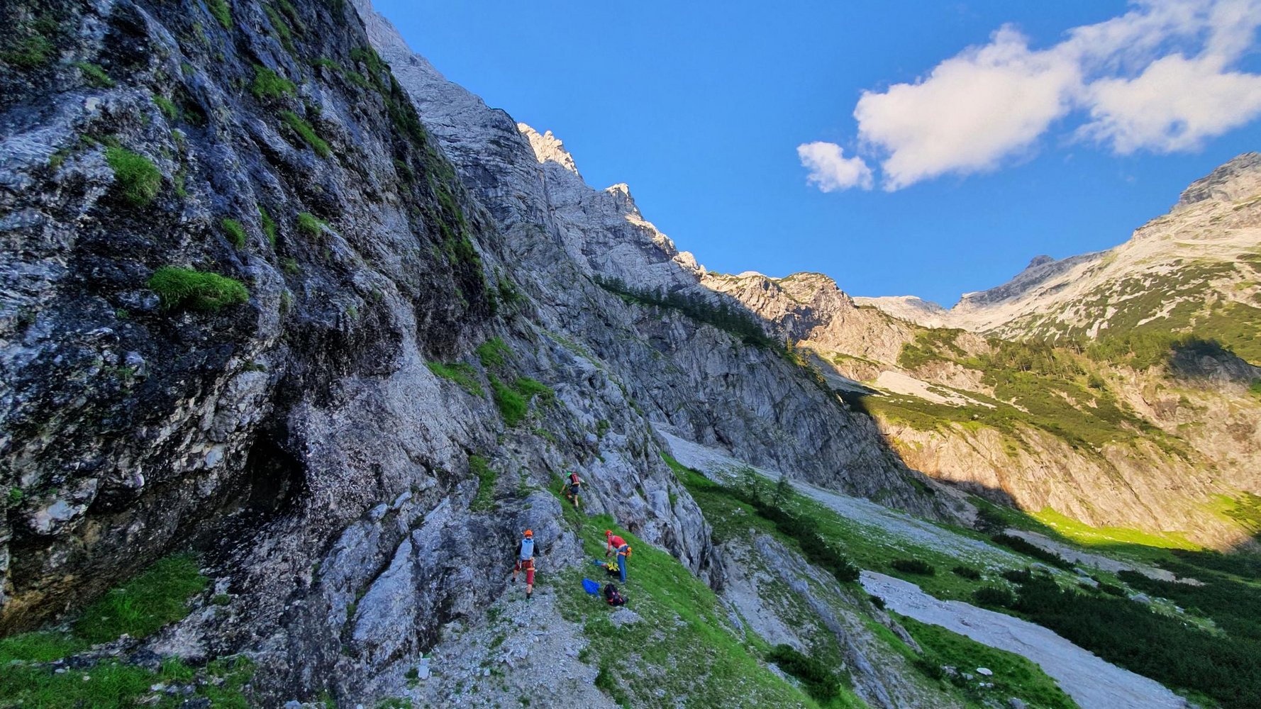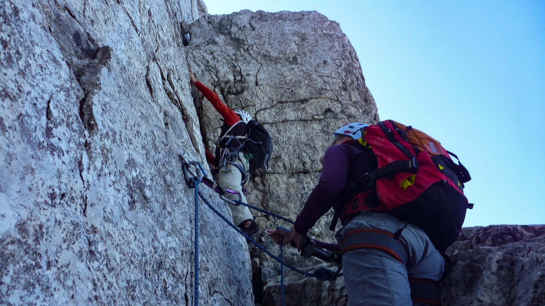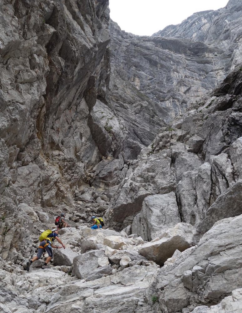 Die Schlusswand ist gut mit Bohrhaken ausgestattet. Auch auf dem 1000 m hohen Weg dort hin gibt es immer wieder Bohrhaken. Dennoch bei weiten nicht für den reinen Sportkletterer geeignet.