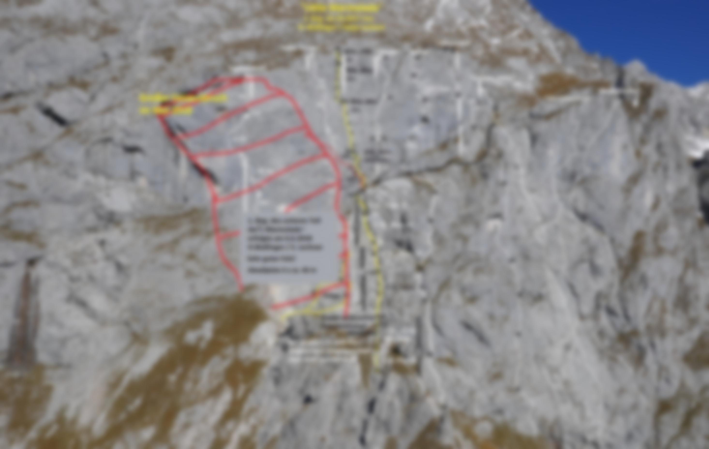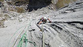 ACHTUNG: Seit dem Felssturz im Mai 2018 sind die unteren Seillängen dieser Tour nicht mehr kletterbar!