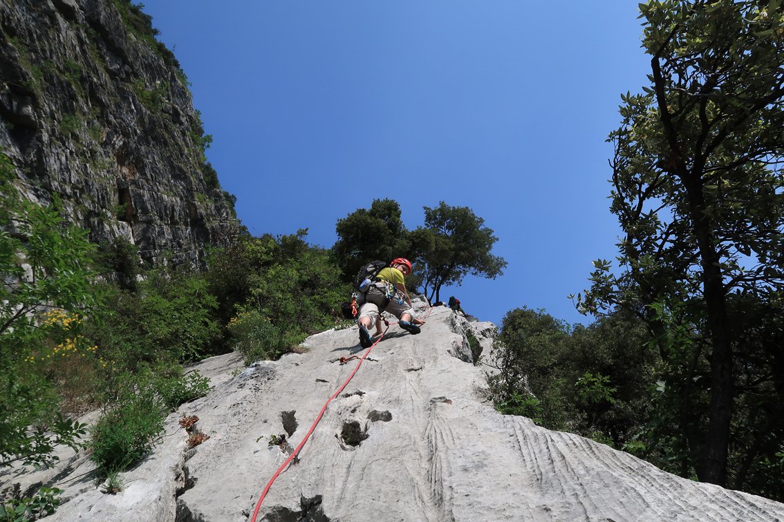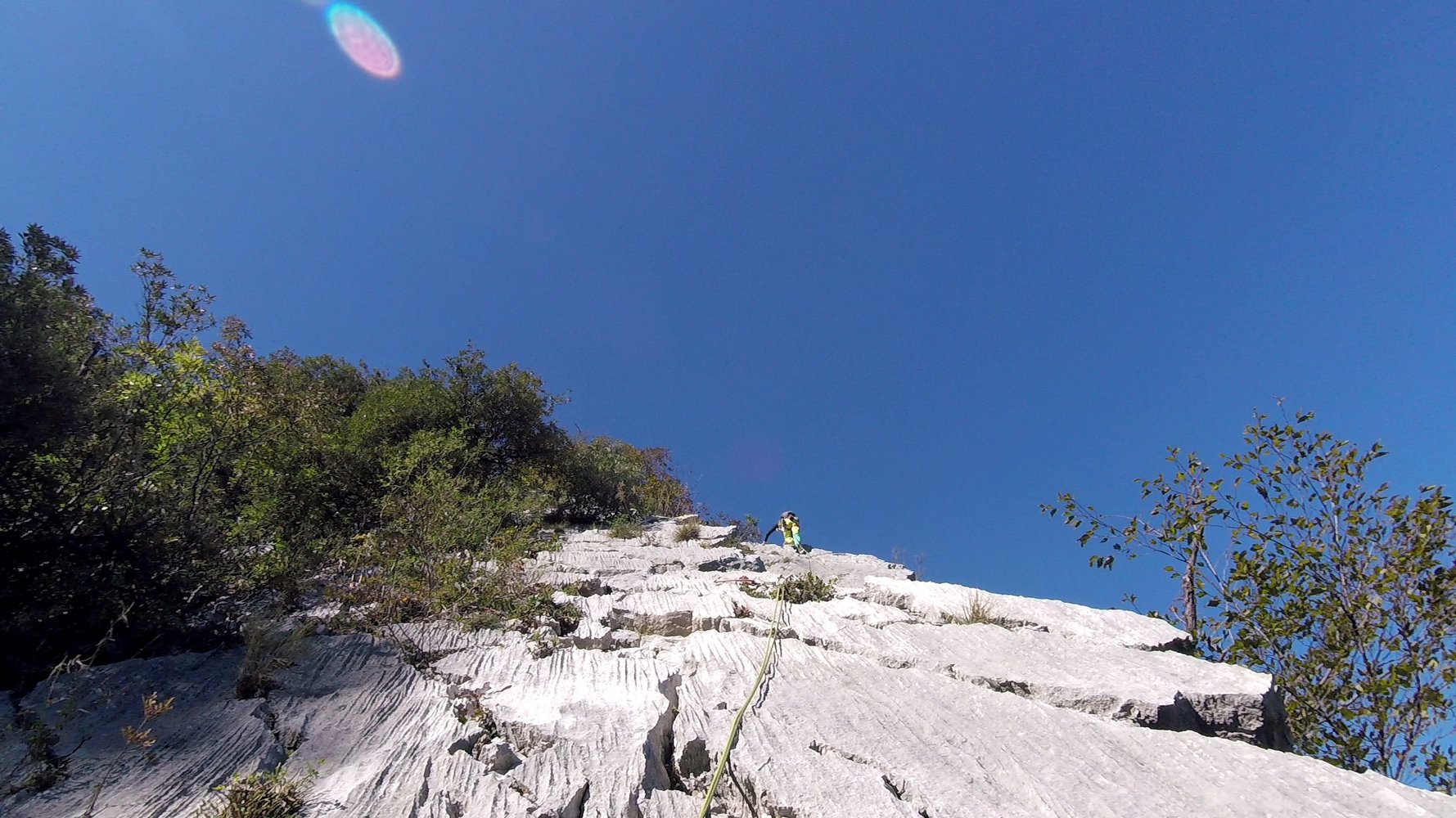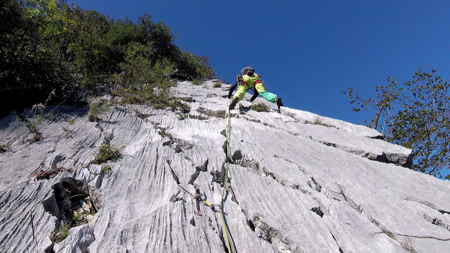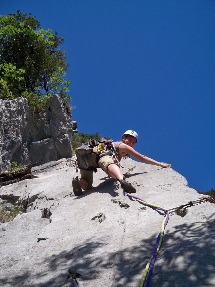 Eine der besten leichten Klettertouren im Sarcatal! Schon beeindruckend, was die beiden Erstbegeher an den Felsen geleistet haben - aus einer "Gemüsekante" mit viel Buschwerk wurde eine wunderschöne Kletterlinie. Der Zu- und Abstieg ist relativ kurz, die Kantenroute ist wirklich schön zu klettern, griffig und sehr leicht - hoher Andrang ist also vorprogrammiert.