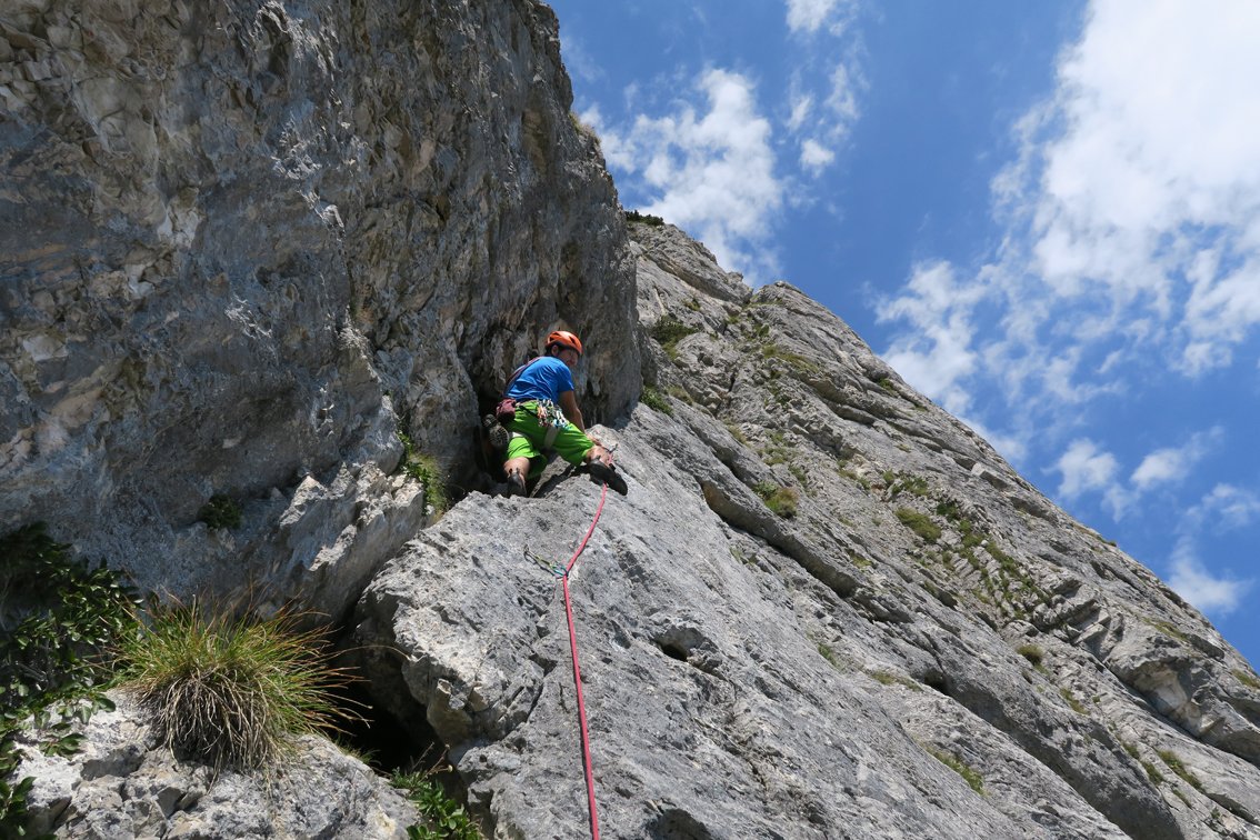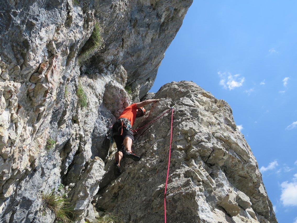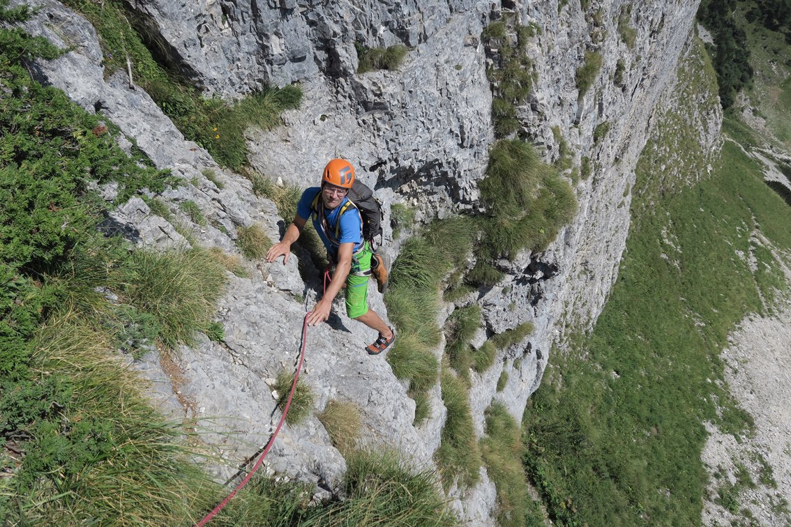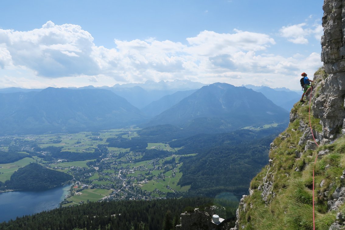 Eine der beliebtesten Klettertouren am Loser. Es ist der klassische Anstieg an der Südwand, welcher oben links mit einer schönen Verschneidung begradigt wurde! Die Tour ist eine ausgefüllte halbtags Beschäftigung, der Fels an den schweren Passagen ist sehr gut, es hat aber auch ein paar grasige 2er-Passagen (da muss man halt durch bzw. hinauf...). Danach ist Abseilen oder Fußabstieg möglich, wobei der Fußabstieg vermutlich die einfachere Abstiegsform ist. Von der Wand bzw. vom Gipfel reicht der Ausblick bis zum Dachsteingletscher.