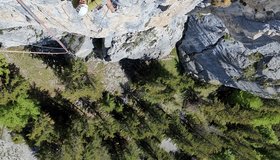 Zustieg wie zum Klettergarten Chinesische Mauer. Einstieg bei dem alten Statikseil über den kleinen Vorbei und danach rechts neben den Touren Klein Adlerauge/ Darf's a bissel mehr sein im Sektor "So schauts aus".