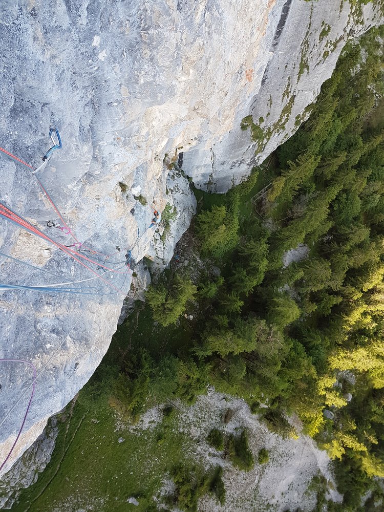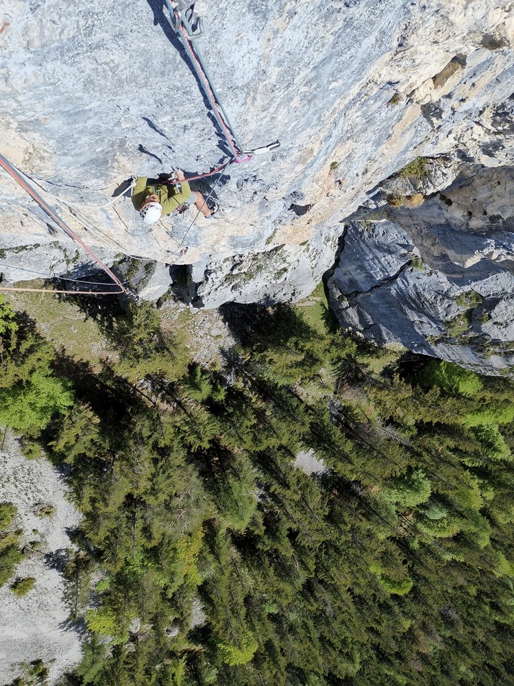Die letzte Länge wurde zu Freikletterzwecken auf den letzten 10m durch Dario Haselwarter und Josi Vögele etwas umgebohrt und nach rechts verlegt.