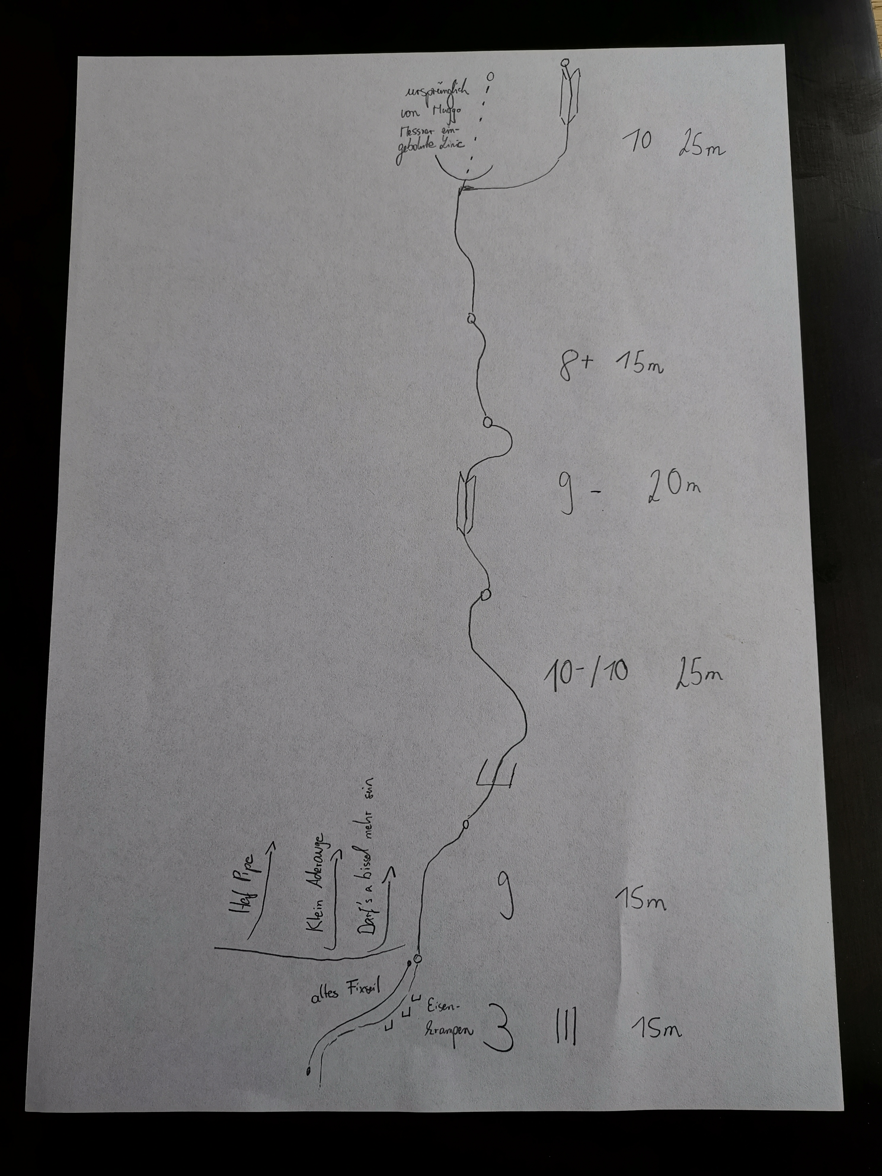 Einzelne Seillängen: 3, 9, 10-/10, 9-, 8+, 10