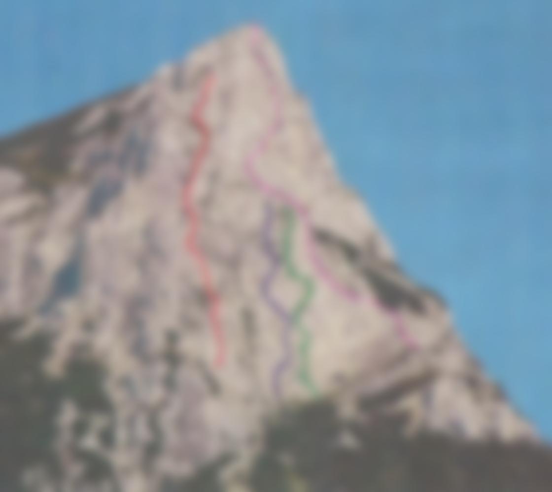 Steile und luftige Kletterei an kompakten Platten garniert mit der einen oder anderen bröseligen Stelle und einer nicht zu unterschätzenden AO Stelle(ca 5m 3 Express)! Schöne Draufgabe nach einer anderen Tour.