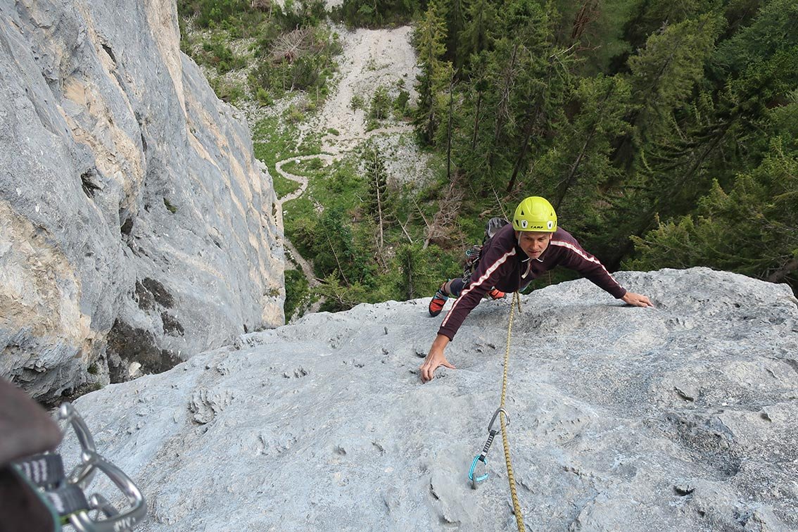 Das Abseilen über die Route ist problemlos möglich. Bitte beim Abziehen des Seiles ein- oder zweimal sehr laut „Achtung Seil“ rufen, denn das Seil schnalzt meistens bis hinunter in den Einstiegsbereich (oft viele Kletterer im Klettergarten).