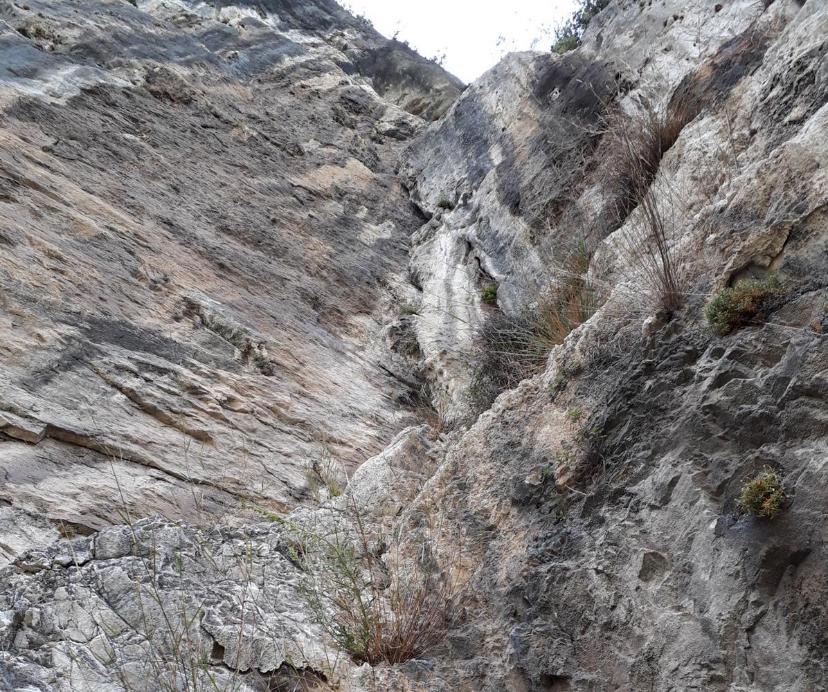 Vom Ausstieg rechts einem Band folgend vorbei am Stand von Aspettando Martino (Anfangs 1-2 u. 2 BH) bis zum Klettersteig Sentiero del Colodri und über diesen zurück zum Auto.