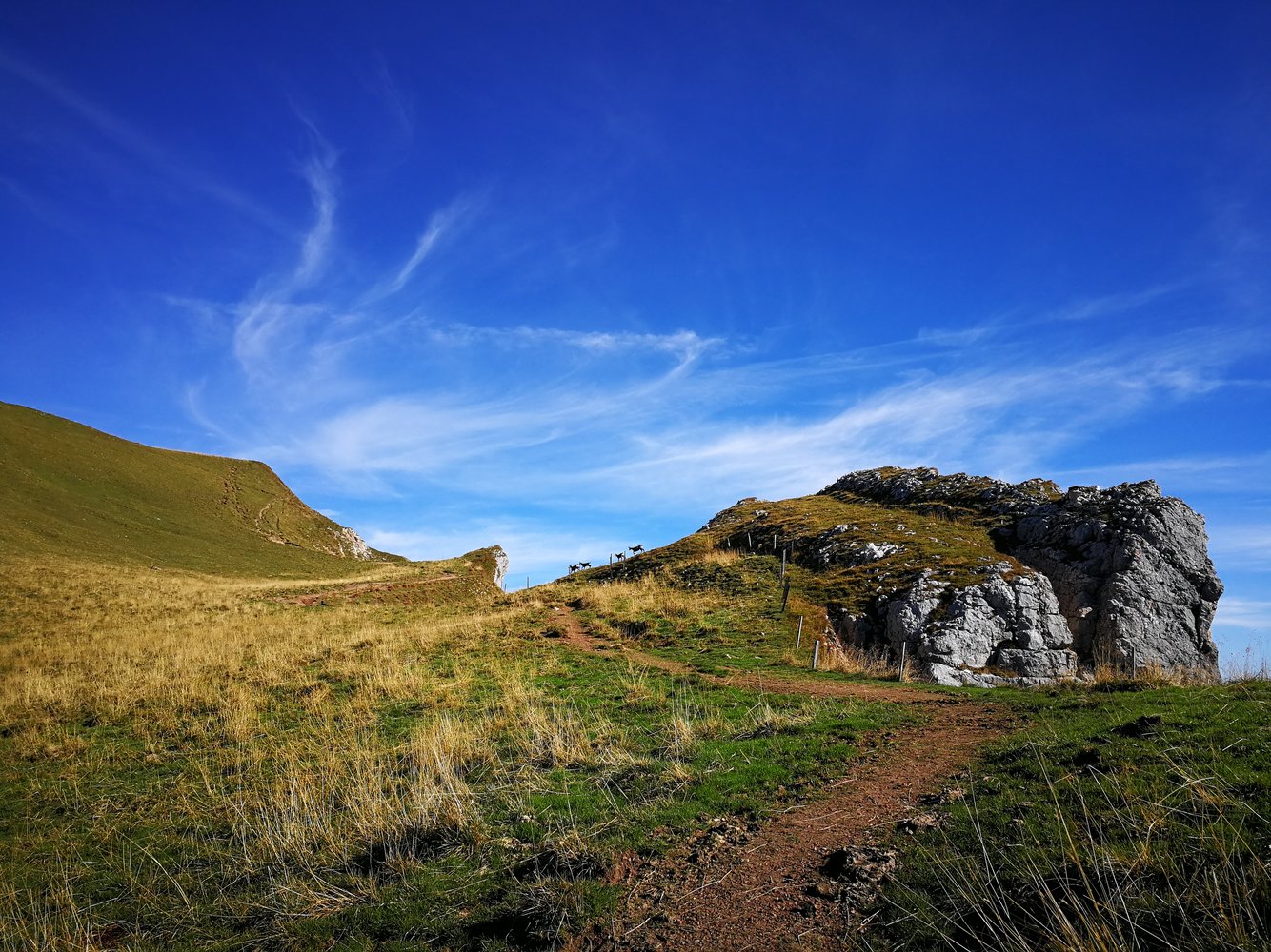 Sollte man der Herausforderung nicht gewachsen sein, d.h die Wand nicht durchsteigen, bedeutet dies Rückzug zum Einstieg. Anschließend rechts (nach Osten) weglos und steil in Richtung Schafsteig ausqueren. (Achtung Wegfindung!)