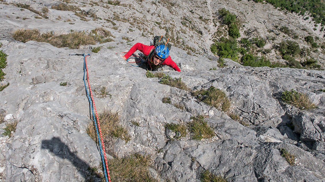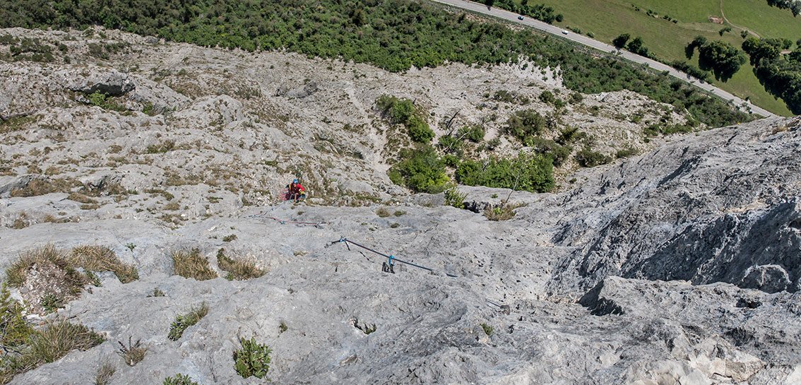 2 x 50 Meter Doppelseil, 14 Expressschlingen und Helm.