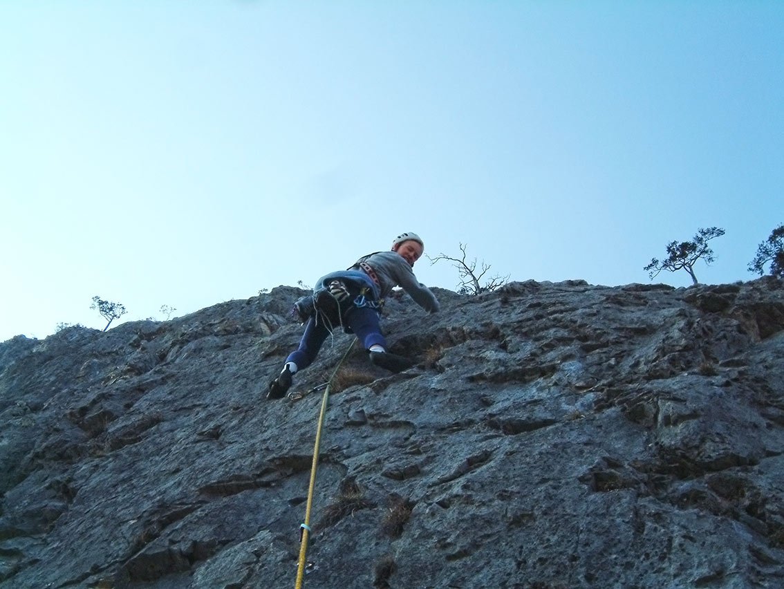 Rechts von „Maxl`s Krone“ befi ndet sich die Route „Kraftlackl“ (6+, 3 Seillängen, 140 m), die ist etwas rustikal abgesichert und teilweise brüchig; wird aber trotzdem gern geklettert (siehe Topo und Übersichtsbild). Der „Ostriss“ (6) ist anspruchsvoll! Im teilweise brüchigen Schrofengelände sollte man sich nicht an jedem Griff bedenkenlos anhalten. Unbedingt einen Helm aufsetzen.