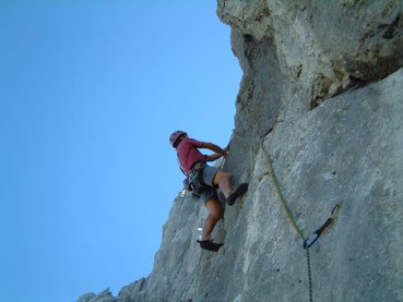 Doppelseil (im Idealfall 50 m) , 15 Expressschlingen und Helm.