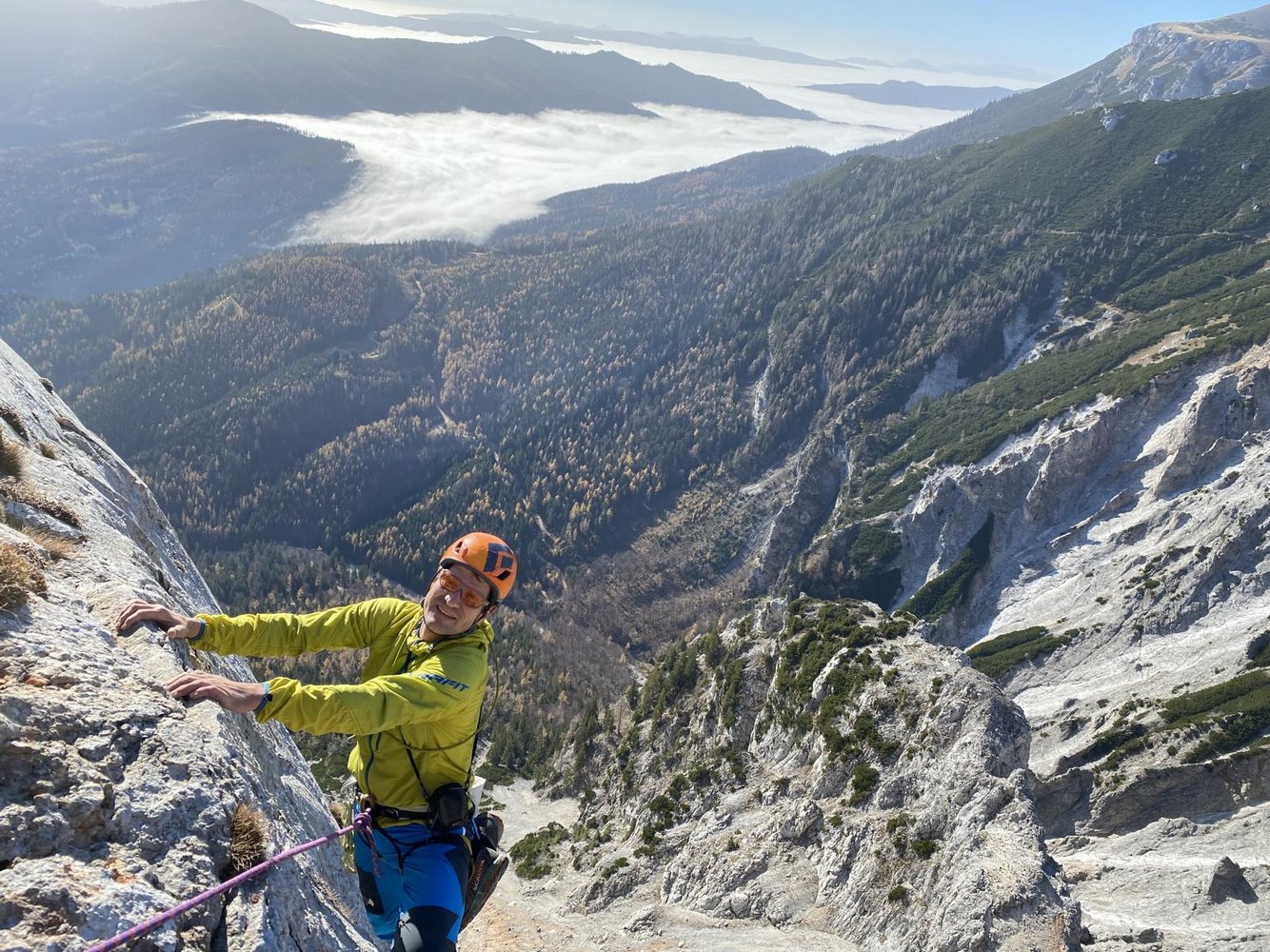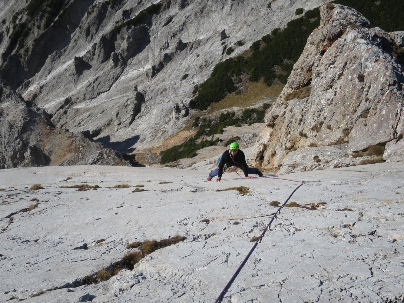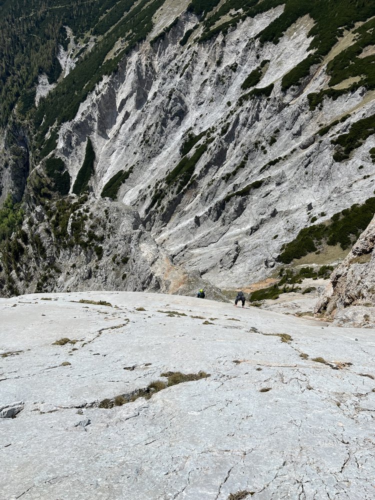 Diese Route in der Preinerwand ist sicher eine der besten Genuß-Touren im Raxbereich. Sie ist durchaus mit dem King Kong Koarl zu vergleichen, zumindest was die Absicherung betrifft. Die Route verläuft im unteren Teil durch nicht sehr festes Gestein (Helm!!!), dafür wird man aber oben durch wunderschöne Platten, die man nur durch "Handauflegen" überwindet, entschädigt. Danach lohnt sich ein Besuch der Seehütte, der nette Wirt winkt eh immer mit dem Bier hinüber...