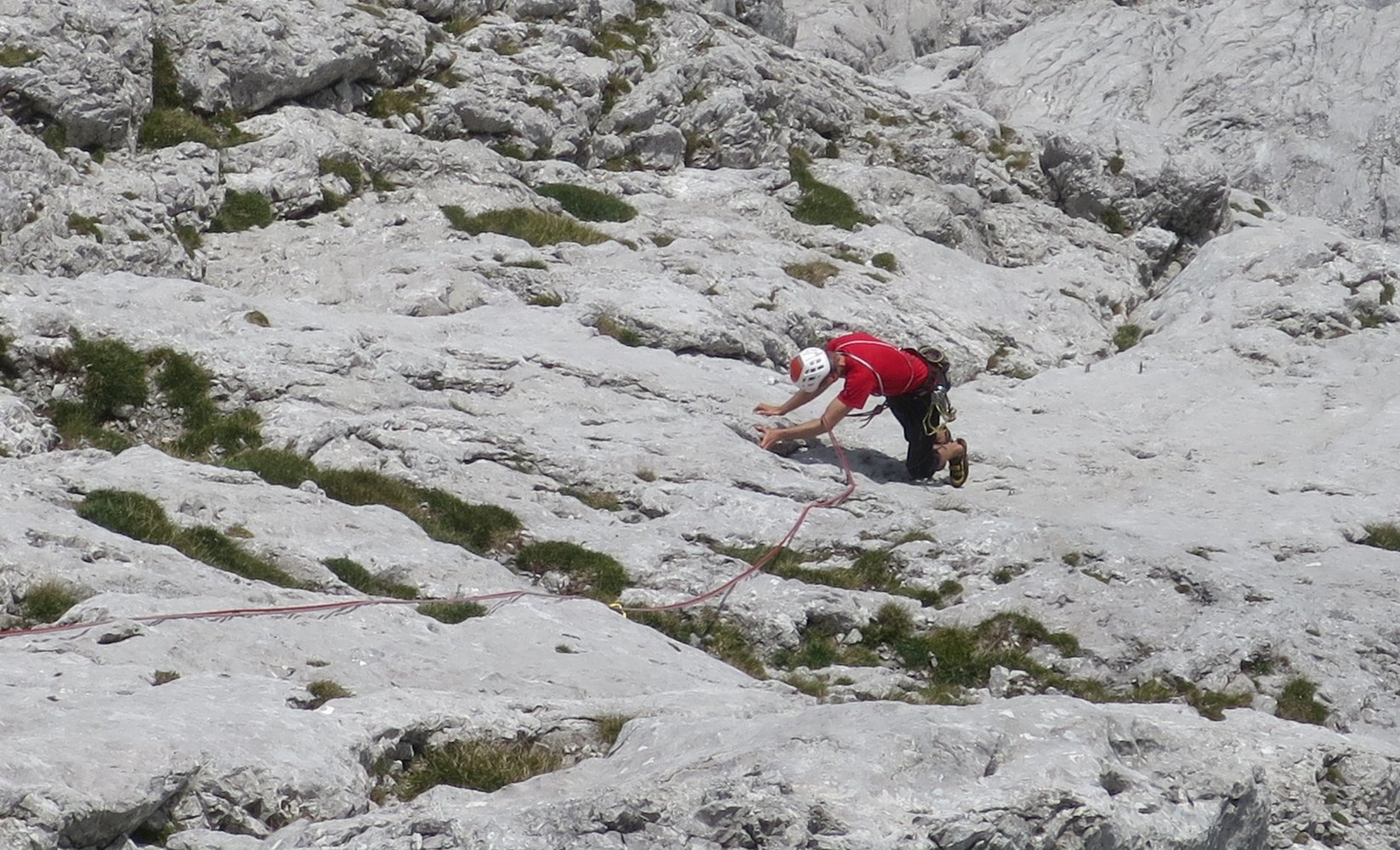 Klassischer Anstieg über Platten, Risse und Kamine. Die Route schwankt von Fels her zwischen sehr gut und schottrig und ist nicht ganz leicht zu finden. Die Absicherung ist alpin, mit Bolts an den Ständen und vereinzelt auch Zwischenbolts.
