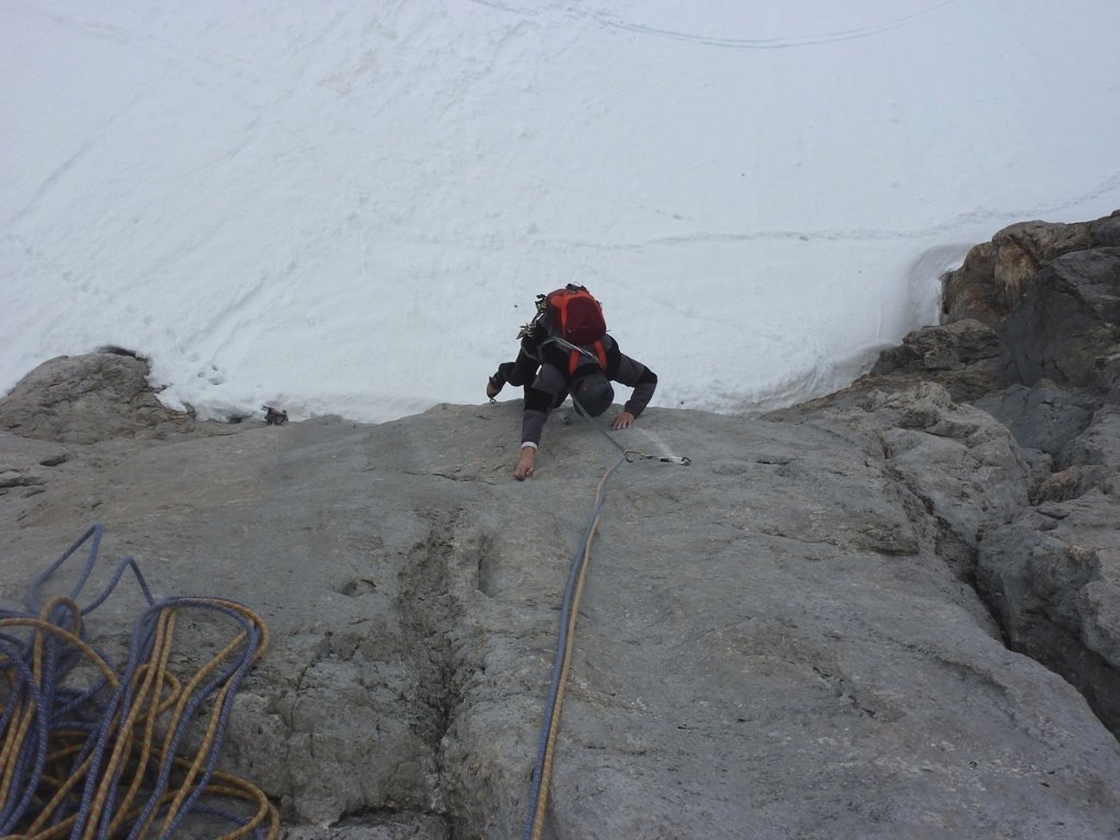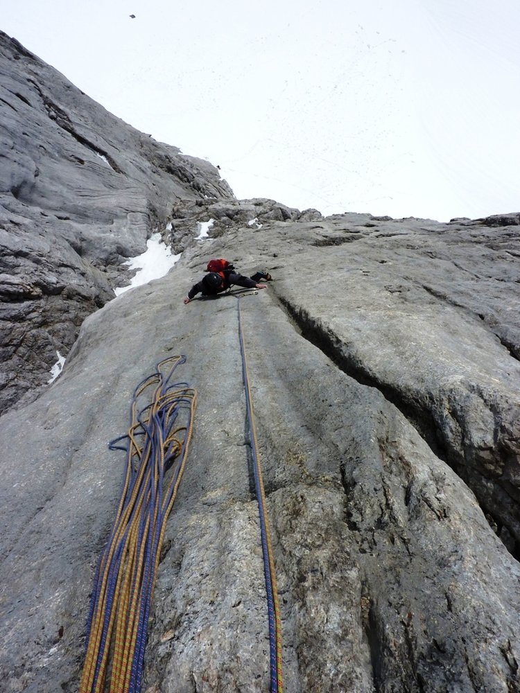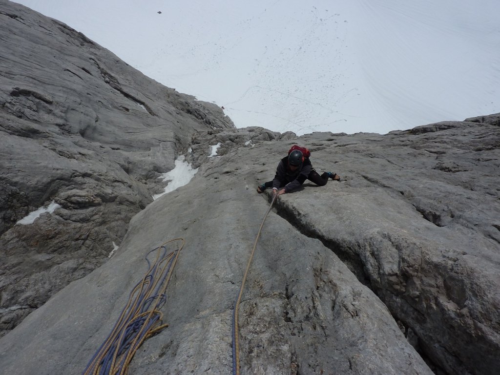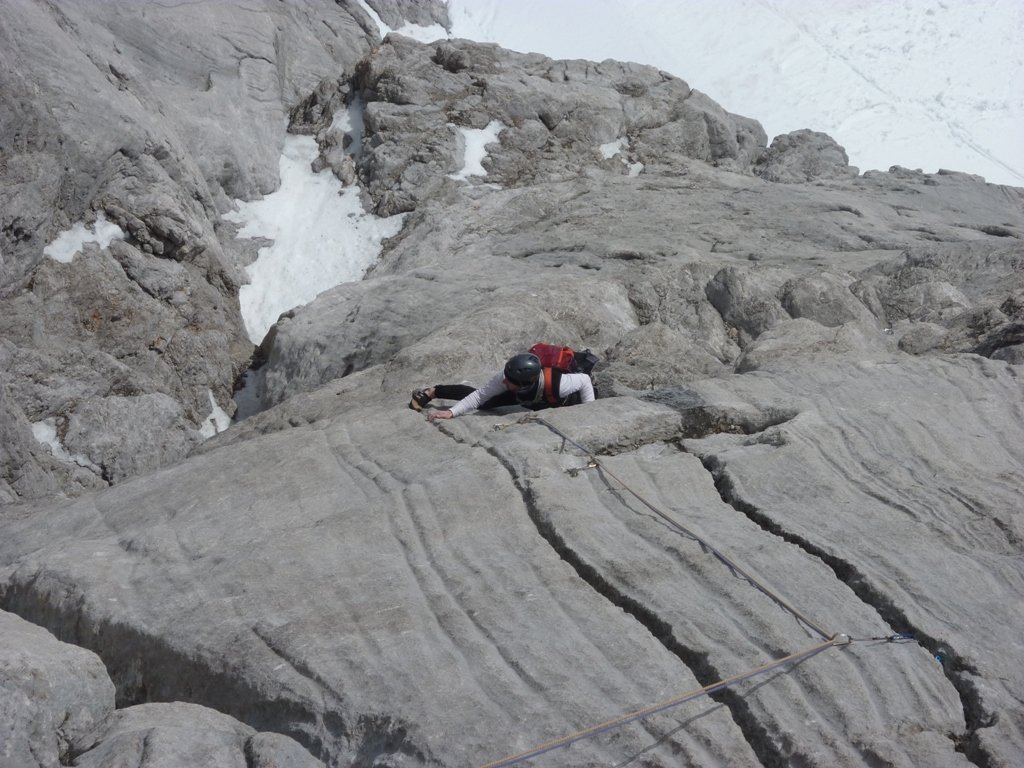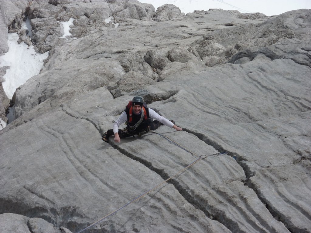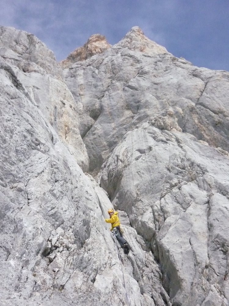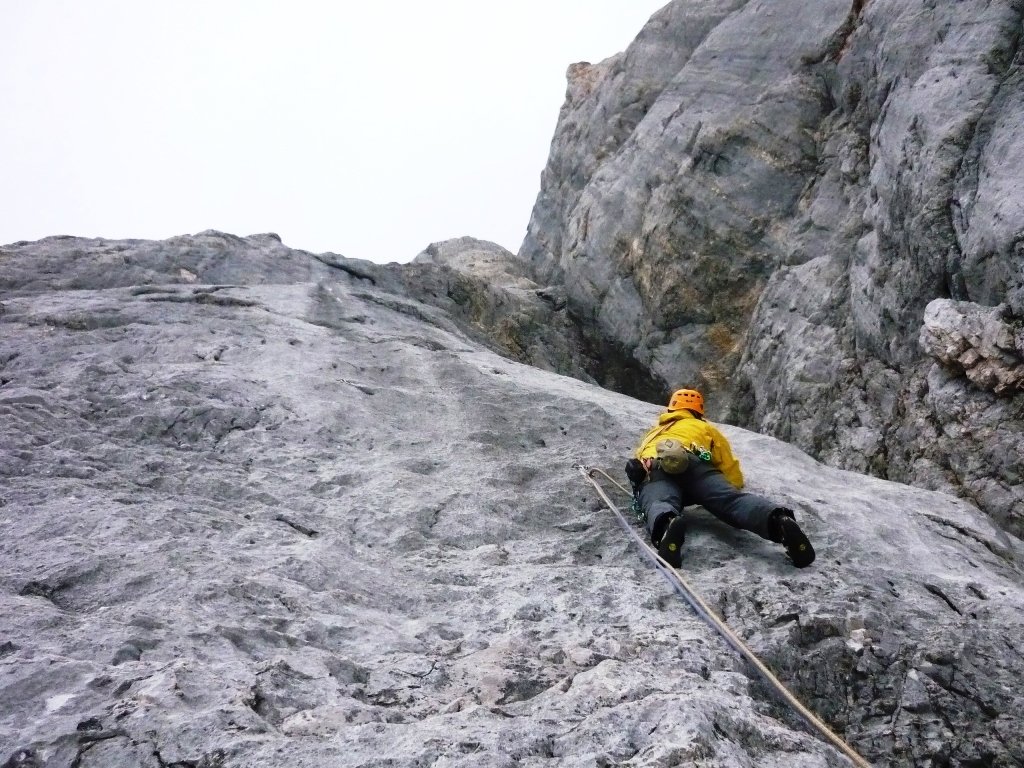 Eine grenzgeniale Tour am großen Koppenkarstein, die über perfekten Fels verläuft. Es gibt quasi keinen schlechten Meter in der ganzen Tour. Es dominiert Wand, Platten und Wasserrillenkletterei wie man sie sich besser nicht wünschen kann. Die Bohrhaken stecken genau dort, wo man sie braucht. Es sind lediglich 3 Stellen mit 7+ bewertet, die auch A0 gemacht werden können. Eine grandiose Tour in tollem Ambiente und königlichem Gestein!