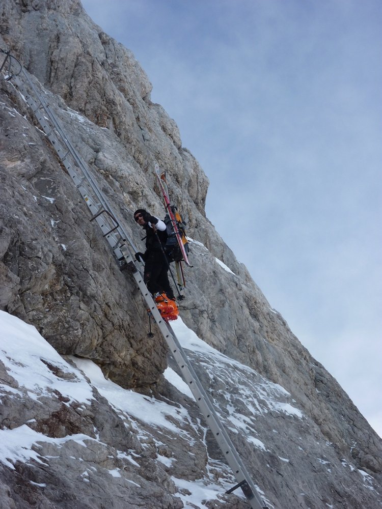 Wenn man die Tour sehr früh im Jahr macht, kann man mit den Ski zum Einstieg gehen, und nach der Tour das Edelgrießkar abfahren. Hierfür sollte aber ein sonniger und windstiller Tag ausgesucht werden. Dann ist die Tour bereits im März kletterbar.