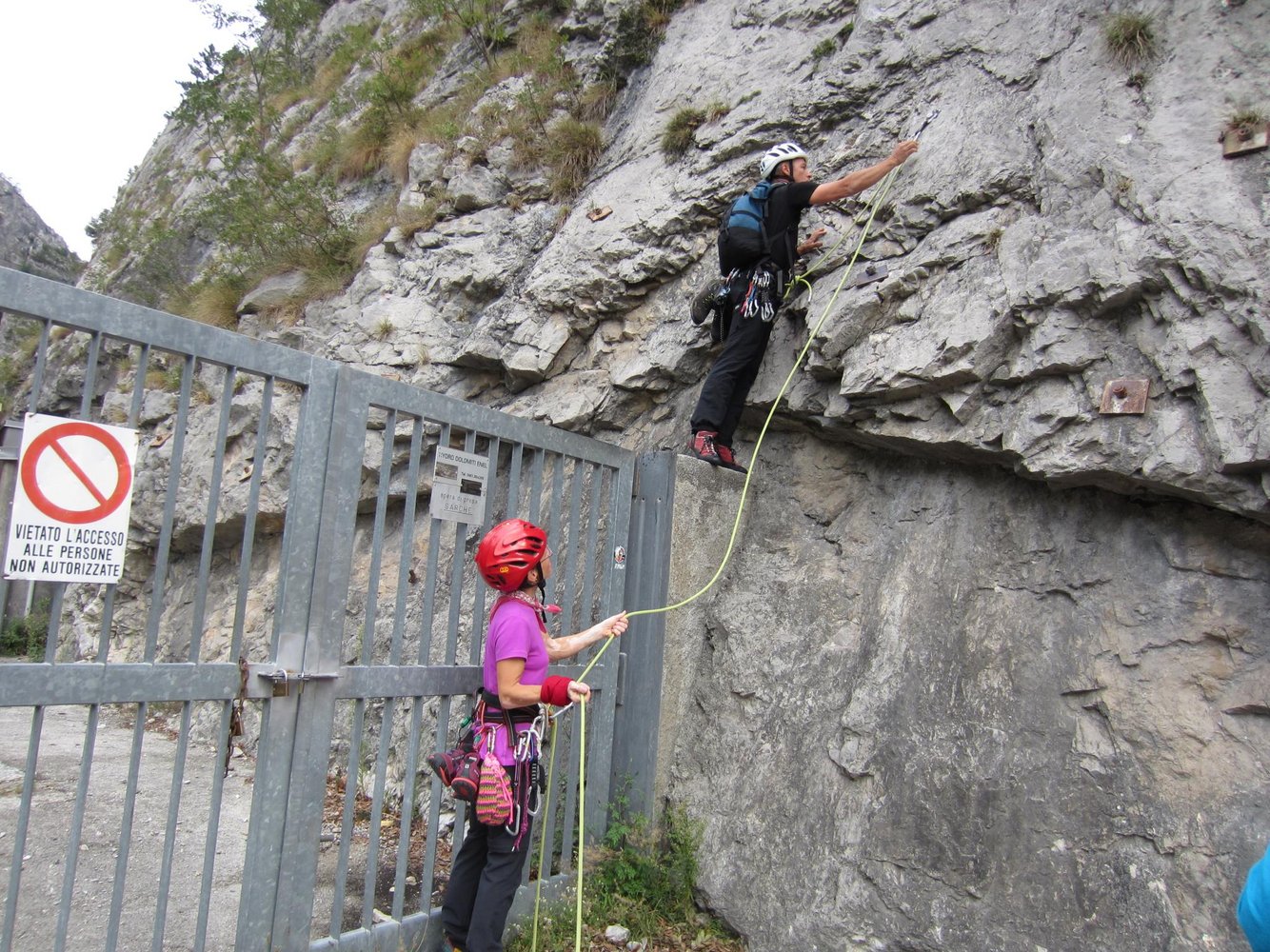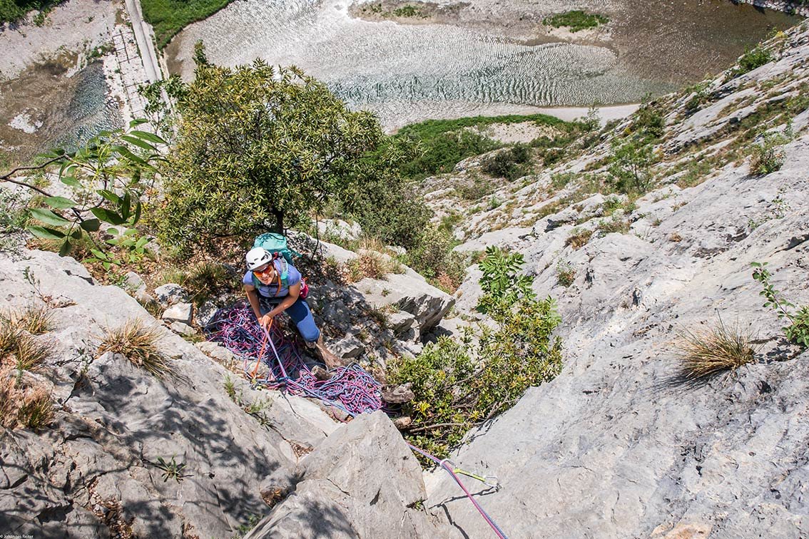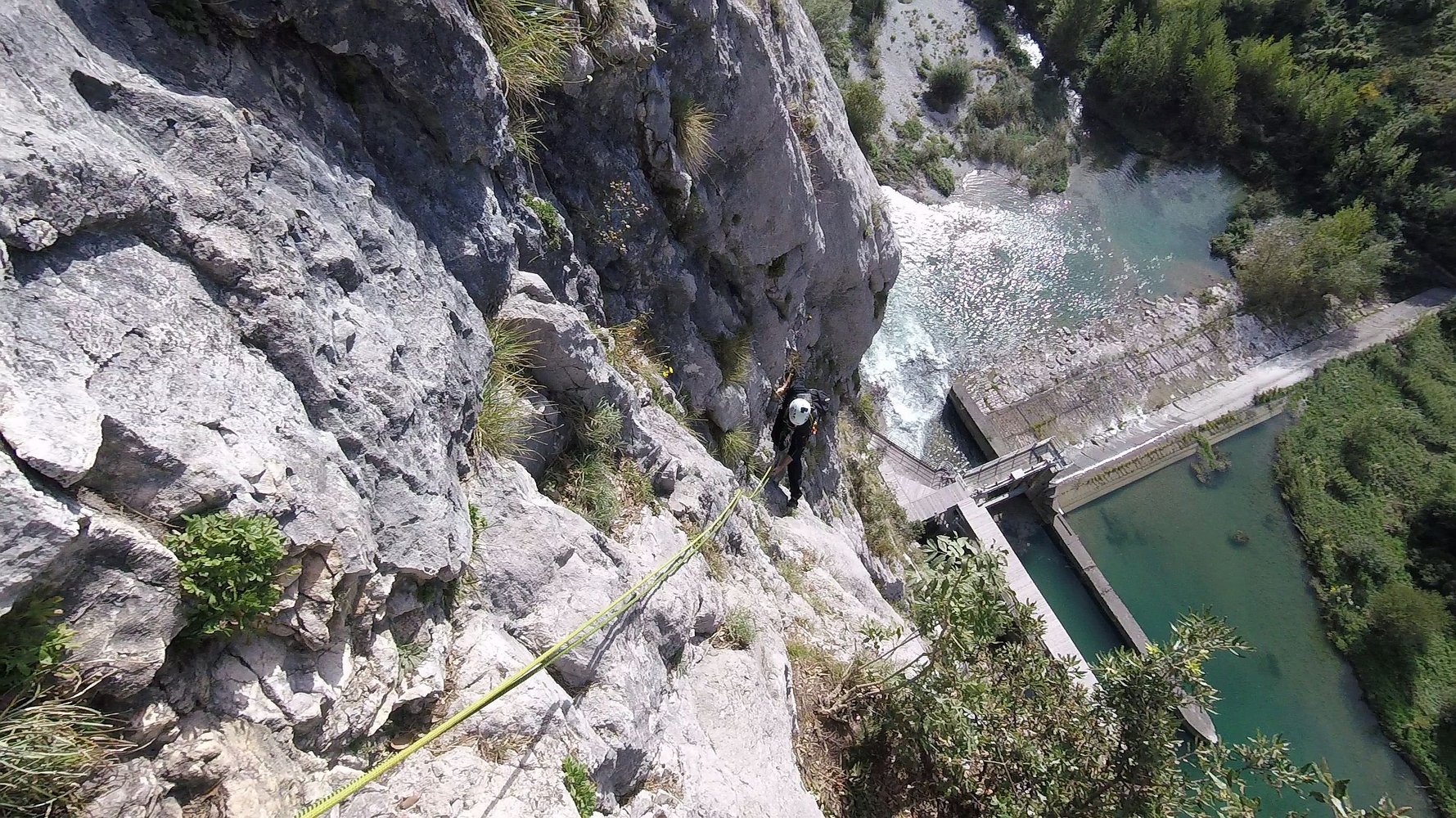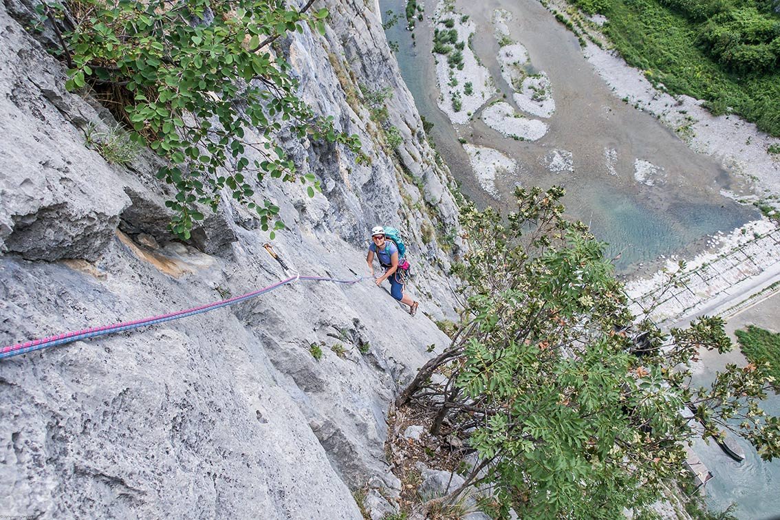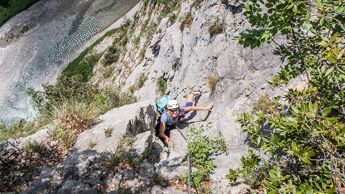 1 x 50 m Einfachseil, 10 Expressschlingen und unbedingt Helm.