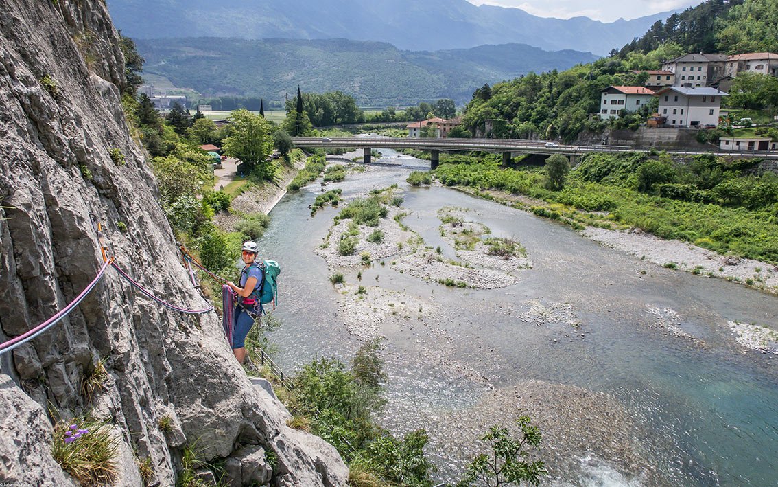 Von der Ortsmitte bei der Abzweigung nach Madonna di Campiglio parken und die Straße nach Madonna bis vor die Brücke und rechts auf einem Schotterweg entlang des Flussufers bis zum Einstieg direkt bei dem Eisengatter der Wehranlage.