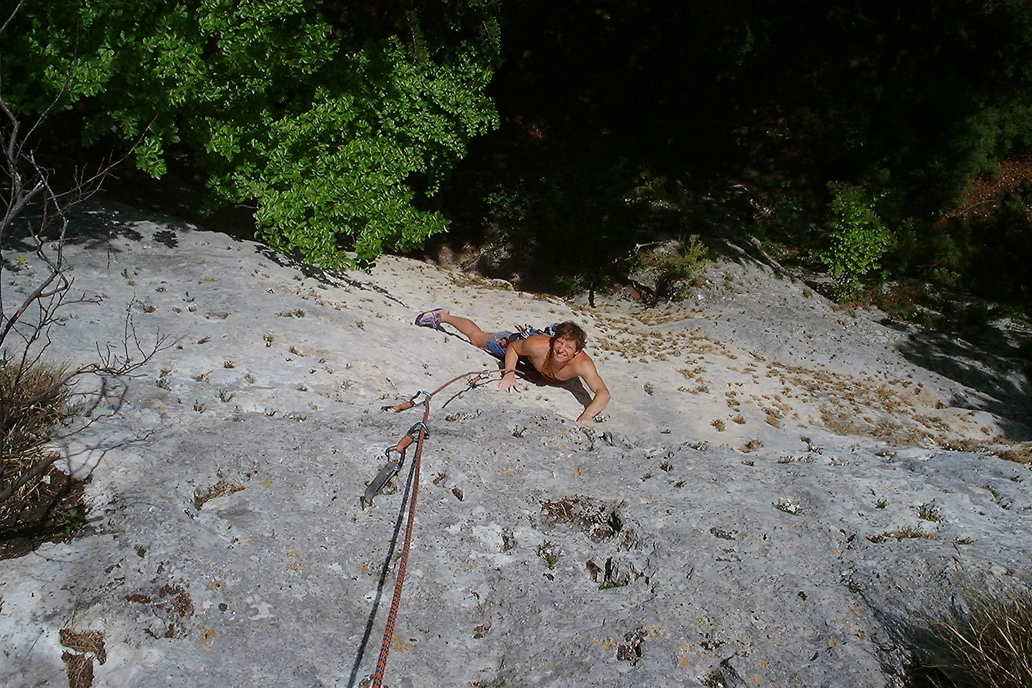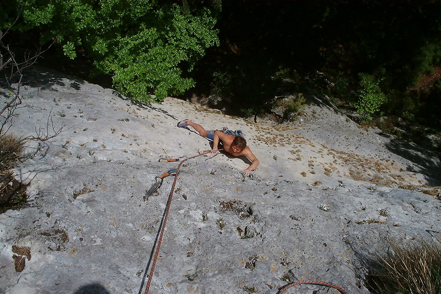 Der Einstieg ist ca. 5 m links der Steilen Minna. Anfangs sehr leicht bis zum 1. BH.