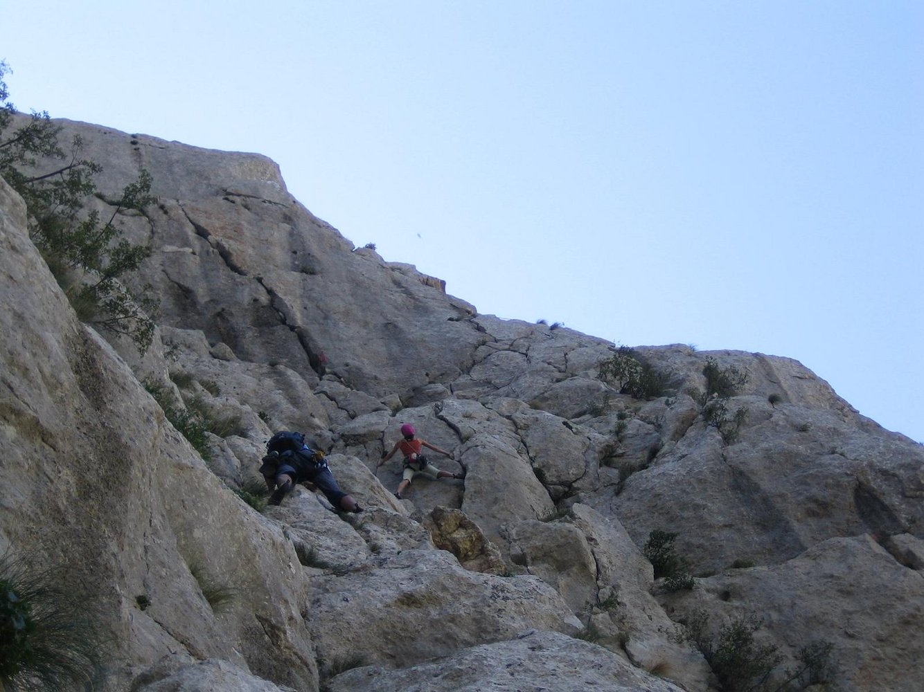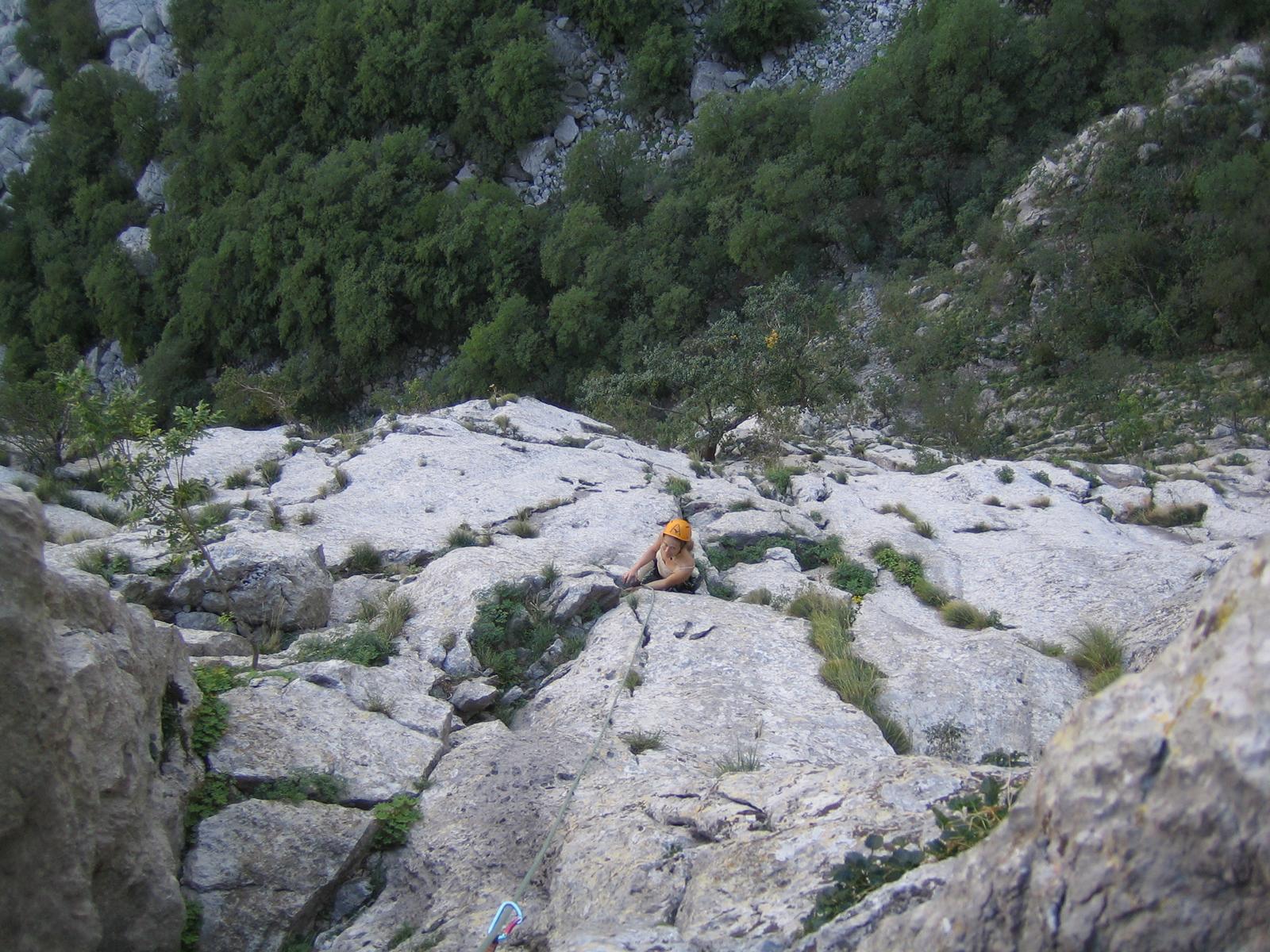 Die Route ist mit Bohrhaken gesichert und alle Stände sind mit zementierten Bolts eingerichtet. Die Abstände sind aber auch hier, wie überall in Paklenica weiter. Ein mittleres Sortiment an Klemmkeilen und Friends ist nützlich. Die Abstände sind stellenweise etwas weiter, siehe Topo!