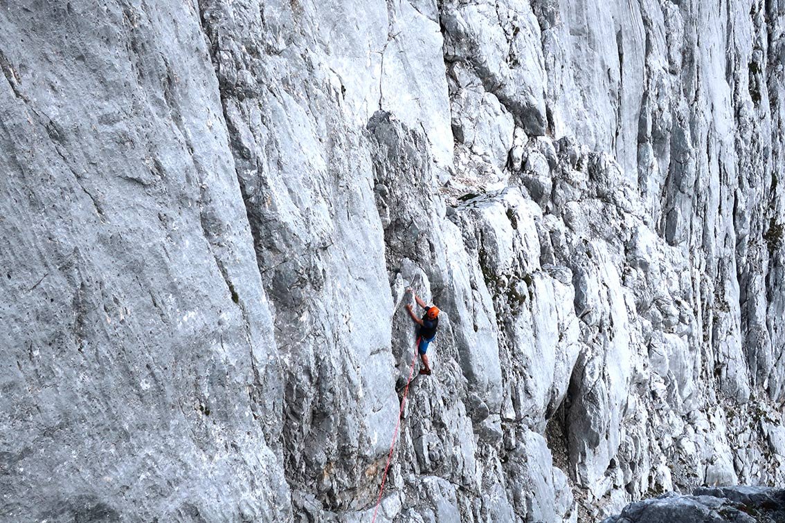 Es stecken nur sehr wenig Bohrhaken tlw. für den Standplatzbau und den Abseilstand.
