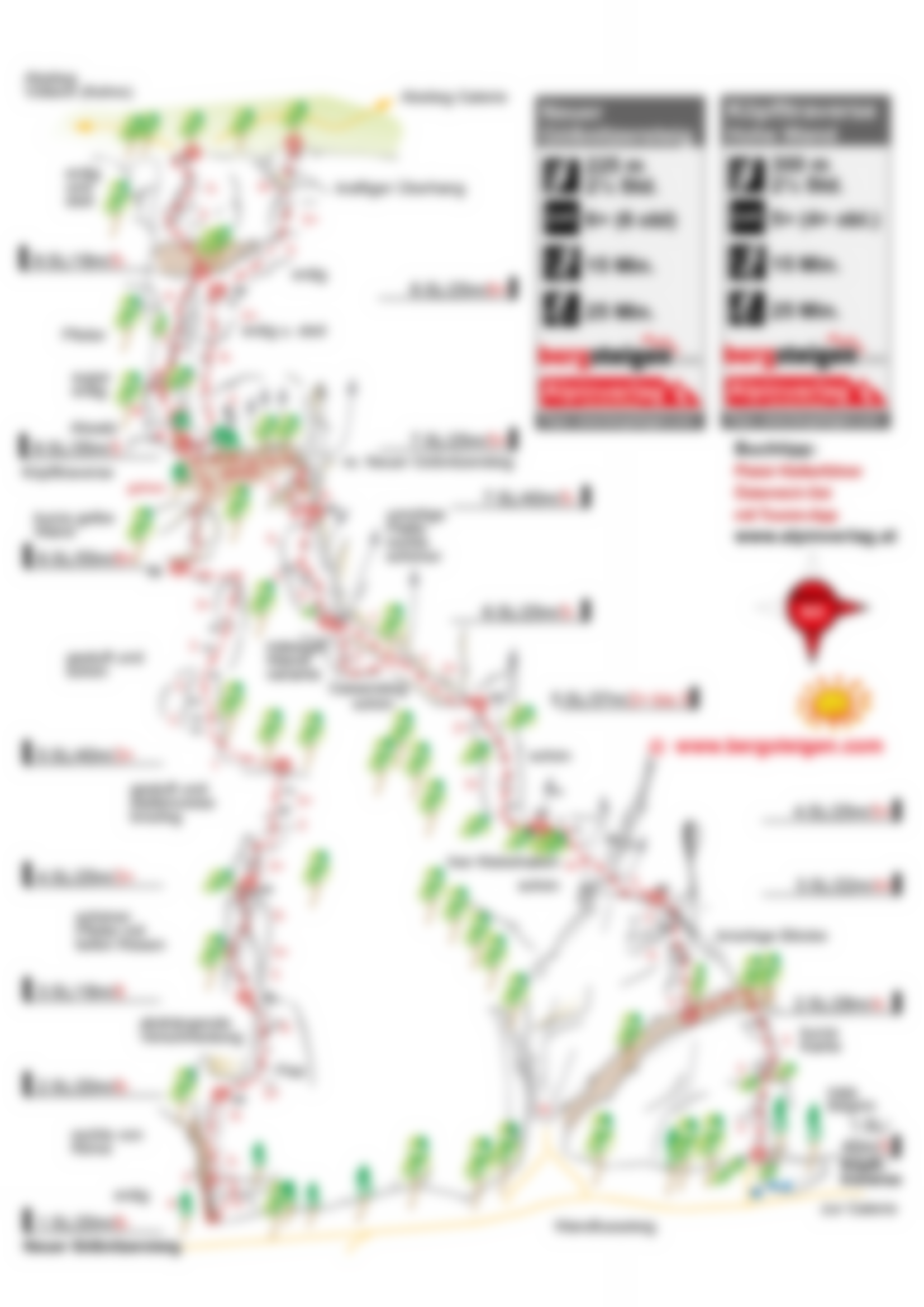 Man folgt oben beim Ausstieg links dem Pfad entlang der Felsen bis zu einer größeren Wiese beim Sky-Walk. Von dort zum dahinter liegenden Drachenflieger Startplatz. Dort steigt man gleich links über die Völlerin (gelbe Markierung) wieder zum Wandfuß ab. Wer von der Galerie kommt, folgt dem Pfad nach Westen bis zum ehm. Ghf. Almfrieden und steigt dort über die Wiese nach Südosten bis ein rot gepunkteter Weg hinunter zur Galerie führt (30 min.)