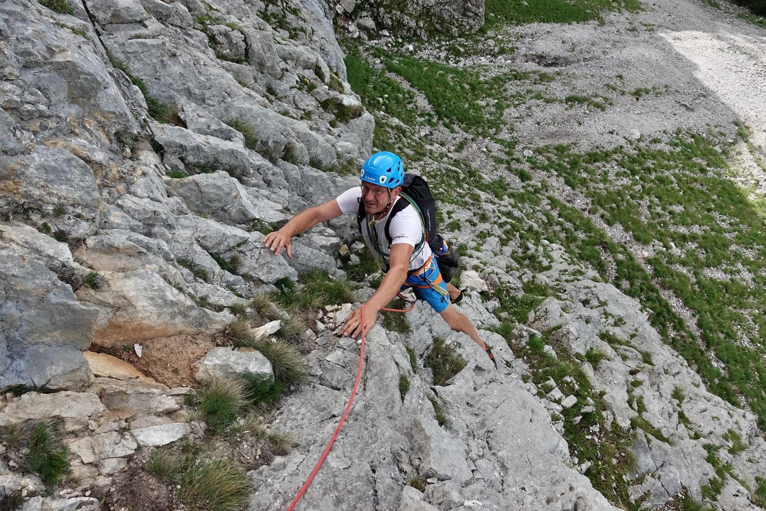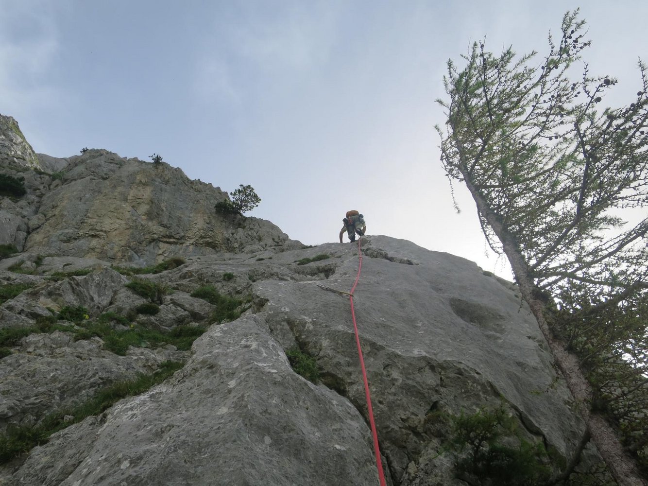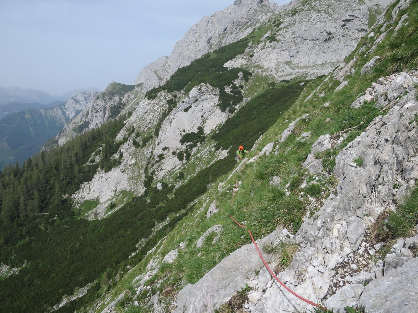 Weiter geht's mit einer der tollen Tour an der Wetzsteinplatte (siehe dort!), sonst rechts über die beim Zustieg erwähnte Rampe wieder zum Fuß des Vorbaus absteigen.