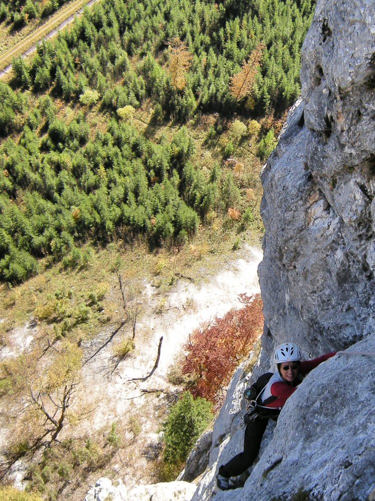 Grundsätzlich sehr gut gesichert in der 6er-Stelle muss man aber Klettern oder etwas legen.