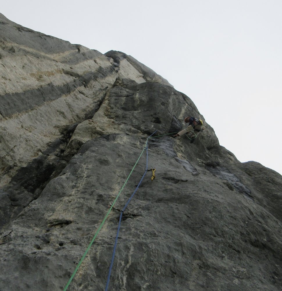 6 SL. 10m bis VI- zu Stand auf Band - hier kann man dann wählen welche Route man weiter klettert..