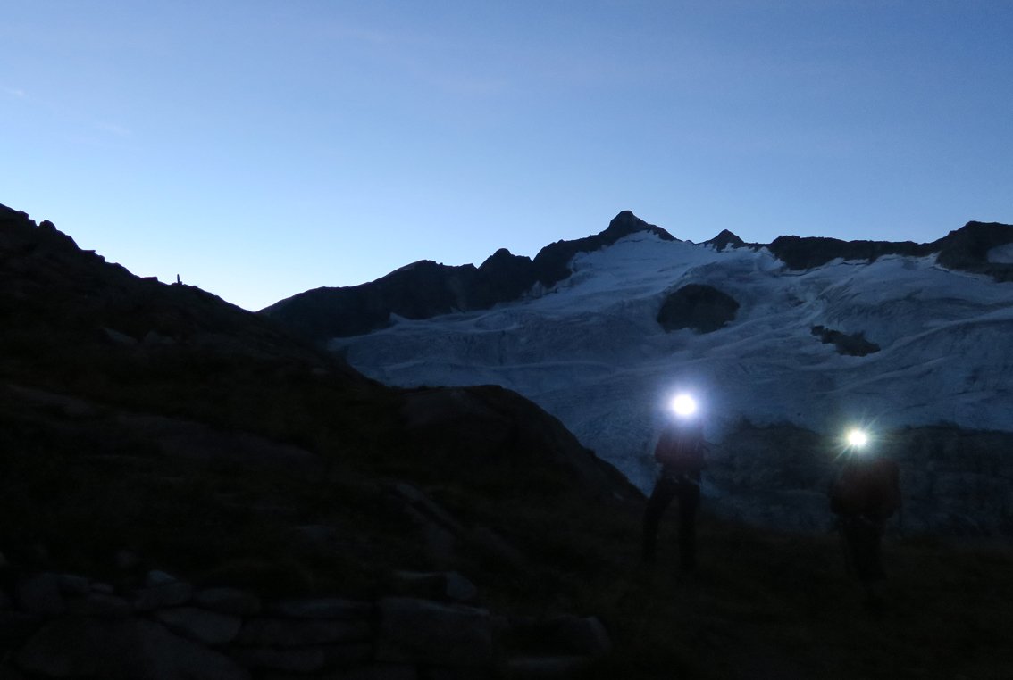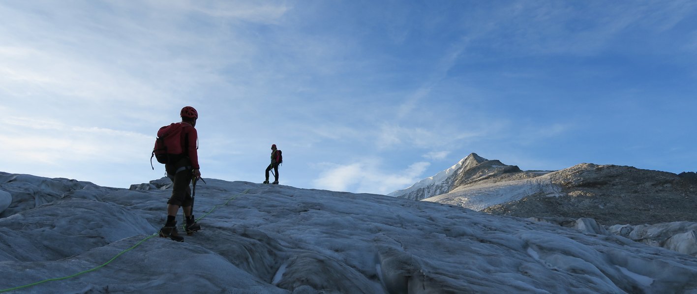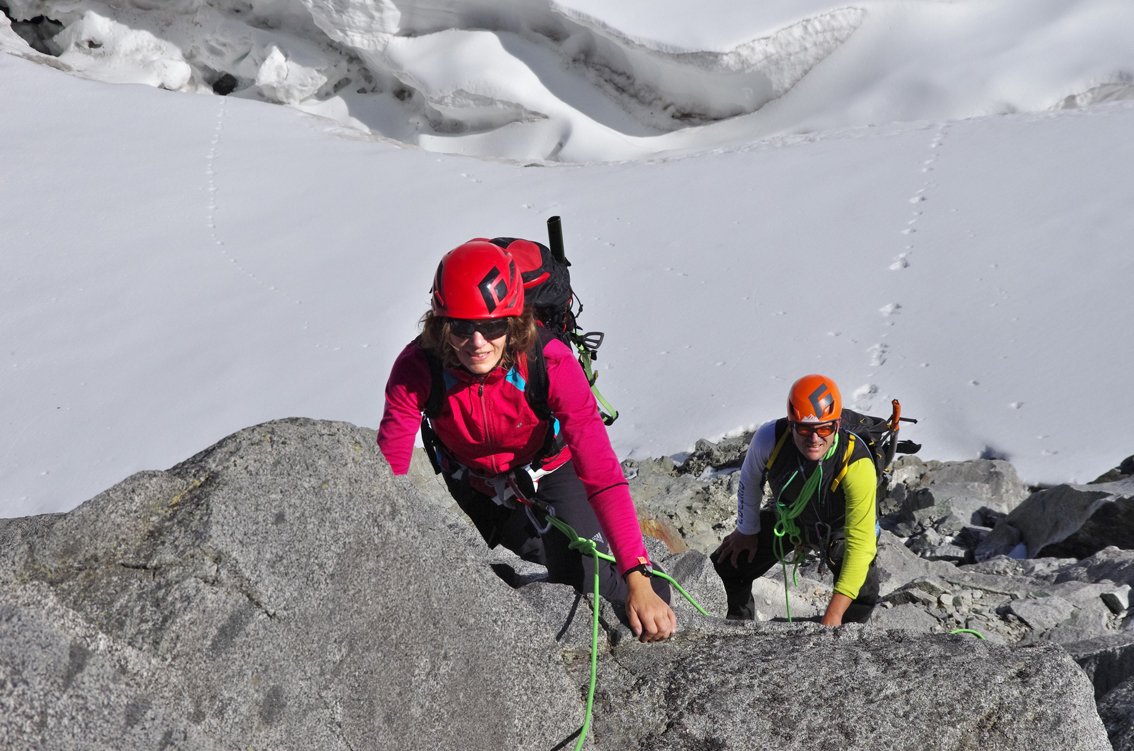 1 x 50 m Einfachseil, 4 Expressschlingen, sehr gut zur Absicherung eignen sich kleine und mittlere Keile bzw. Friends, einige Bandschlingen und Helm. Komplette Gletscherausrüstung für den Zu- und Abstieg.
