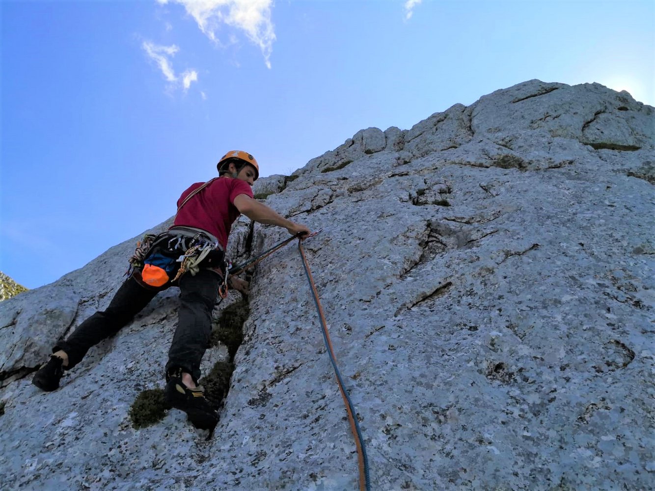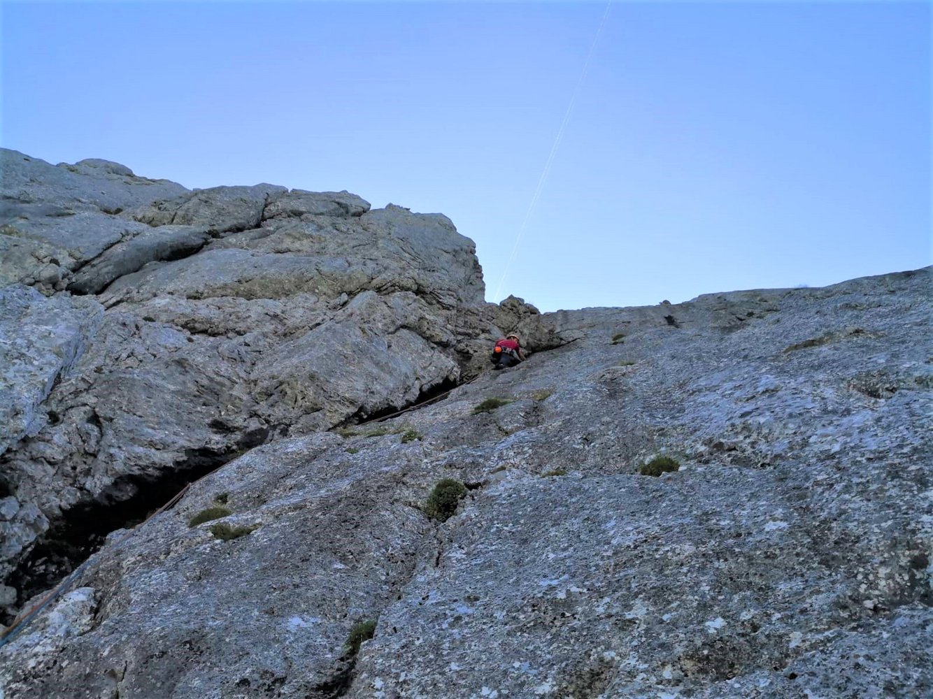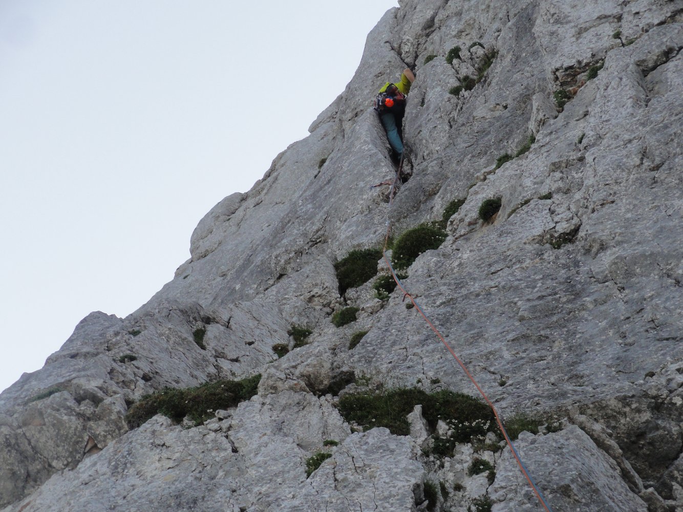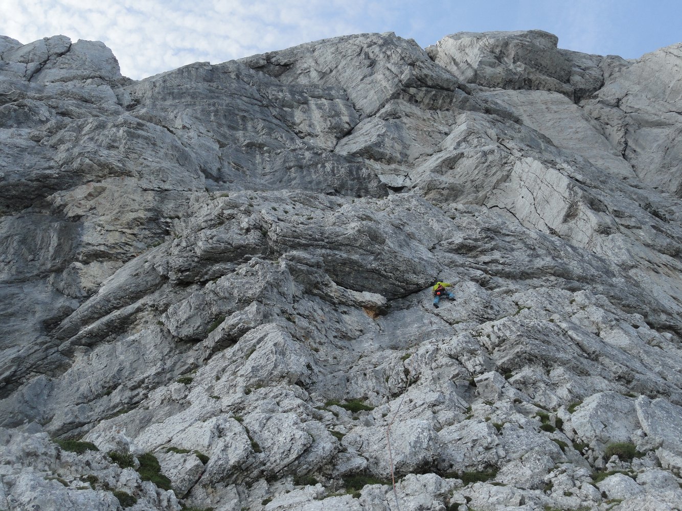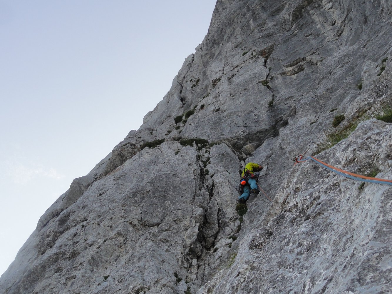 Schöne, gut abgesicherte Route mit etwas alpinem Charakter auf einen eher unbekannten und somit einsamen Gesäuse Gipfel. Die untere und steilere Hälfte der Tour wartet mit wunderschönen Seillängen in kompaktem Fels auf. Im oberen Teil wechselt Gehgelände mit kurzen schönen Aufschwüngen im gemäßigten Schwierigkeitsgrad. Einige Passagen weichen von der alten original Führe zugunsten der besseren Felsqualität etwas ab.