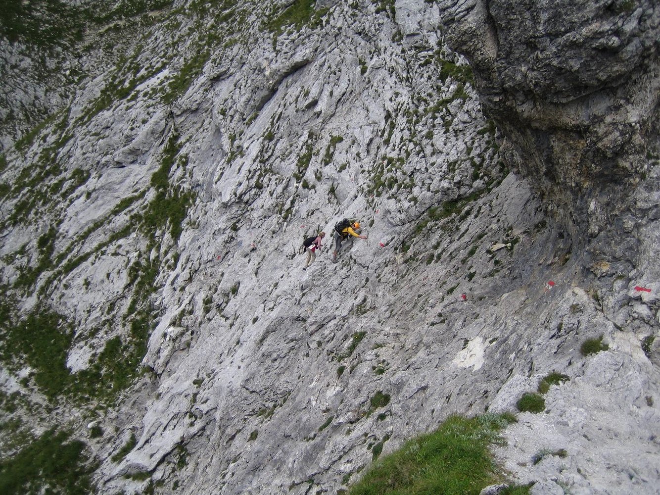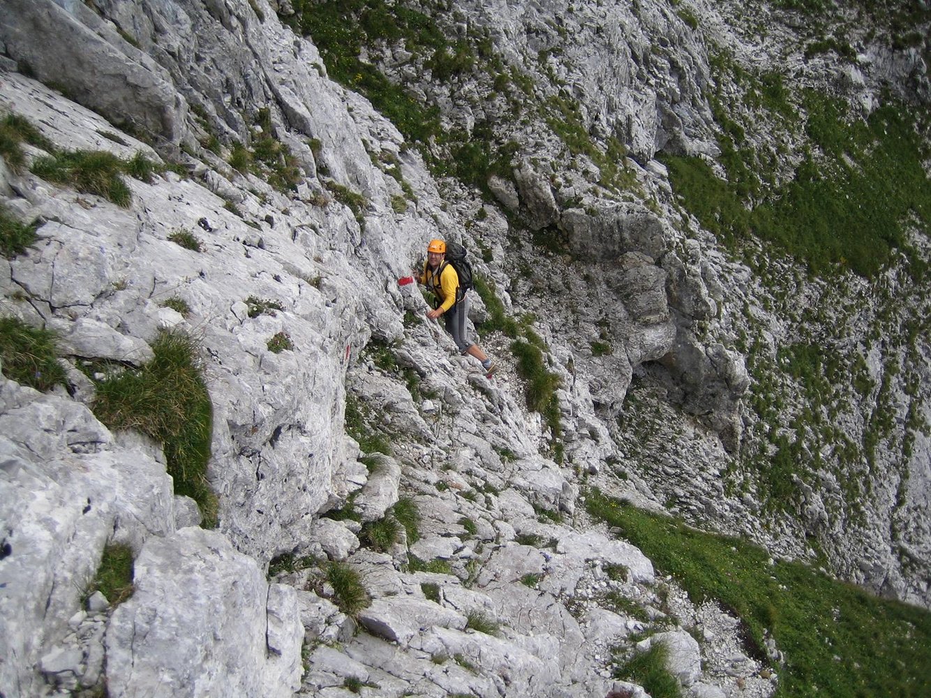 Helm aufgrund der Steinschlaggefahr für alle empfohlen, für Ungebüte auch ein Sicherungsseil.