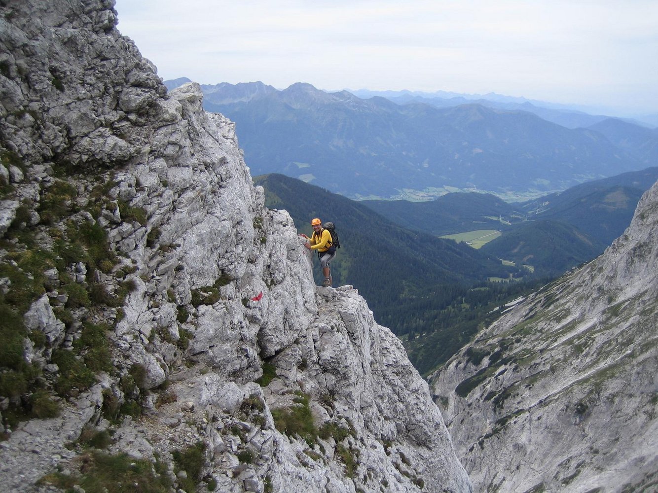 Leichtester Anstieg auf den Admonter Reichenstein. Die beliebete und abwechslungsreiche Tour weist zu Beginn und im oberen Teil einige teils auch ausgesetzte Kletterstellen auf und ist im felsigen Bereich mit roten Punkten markiert und führt auf einen der schönsten Gesäuseberge