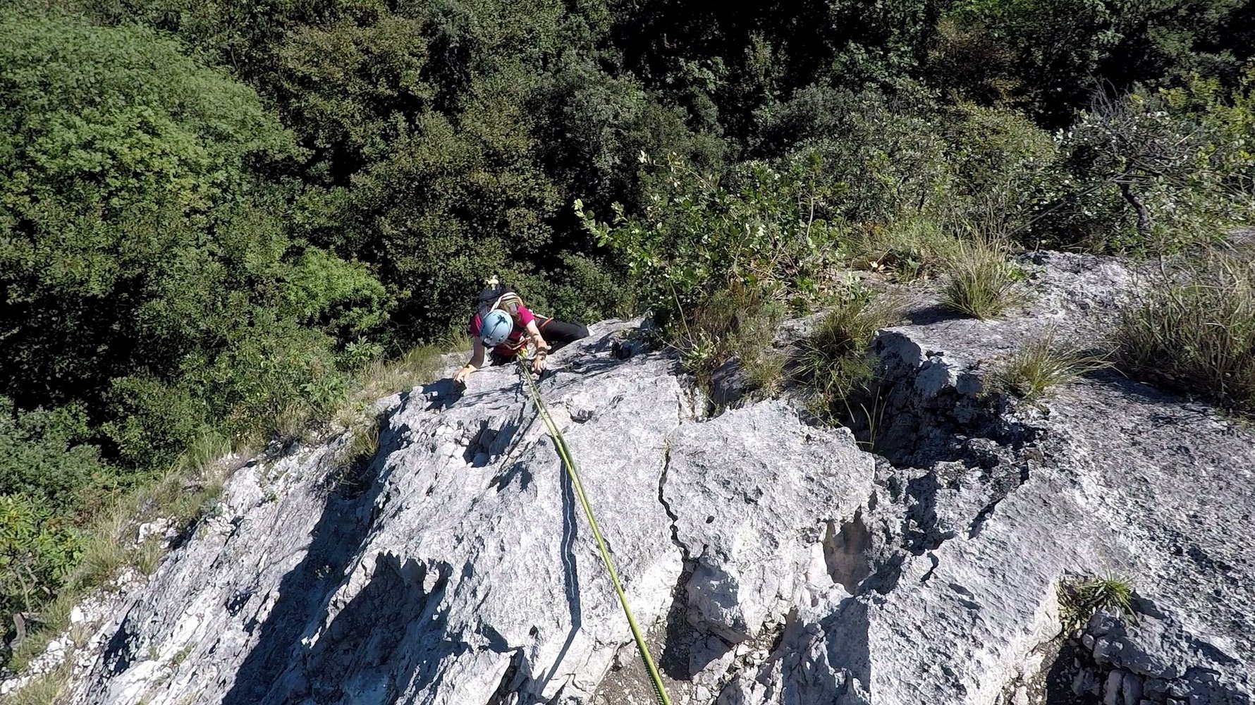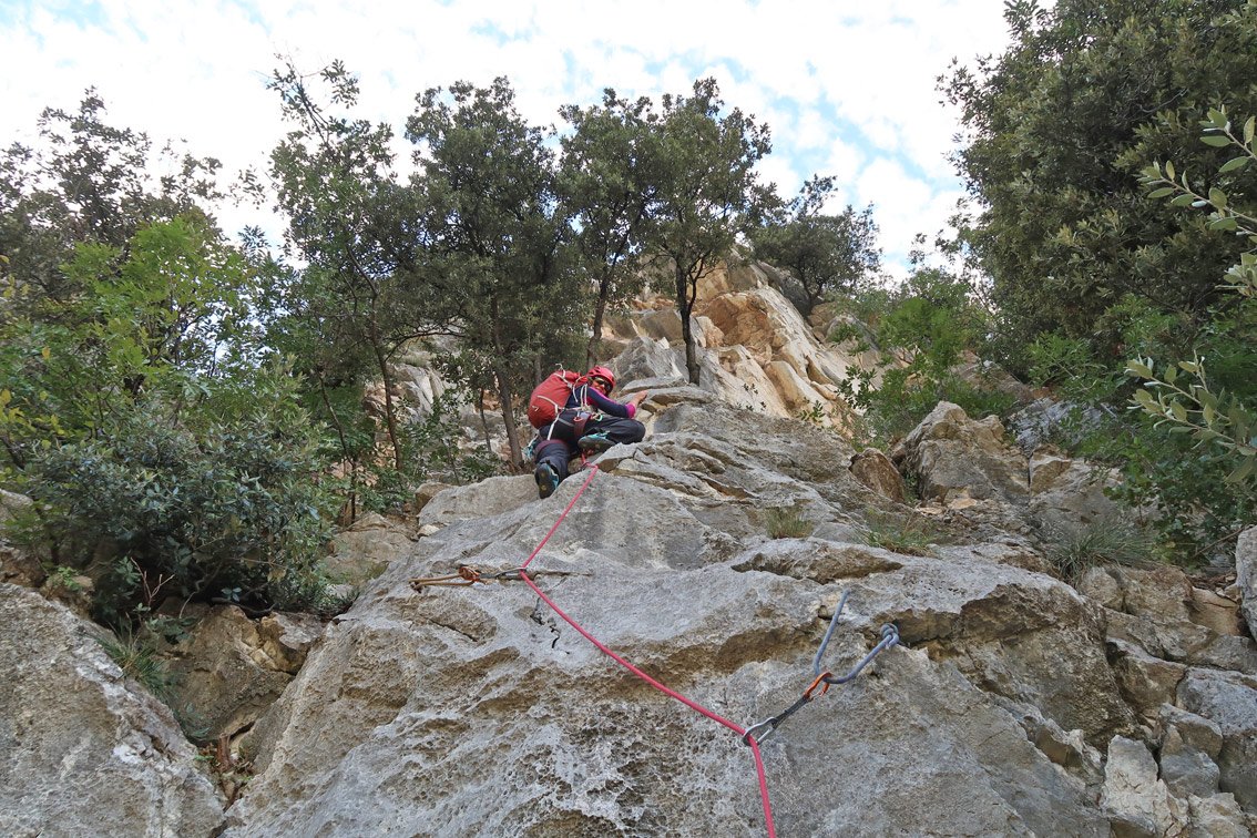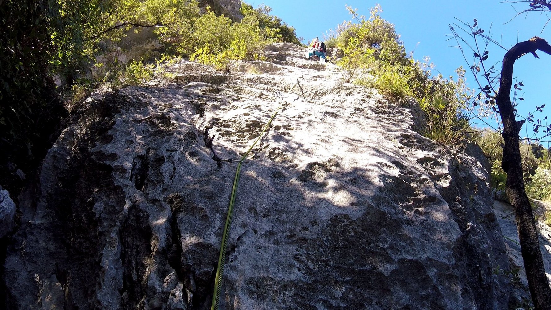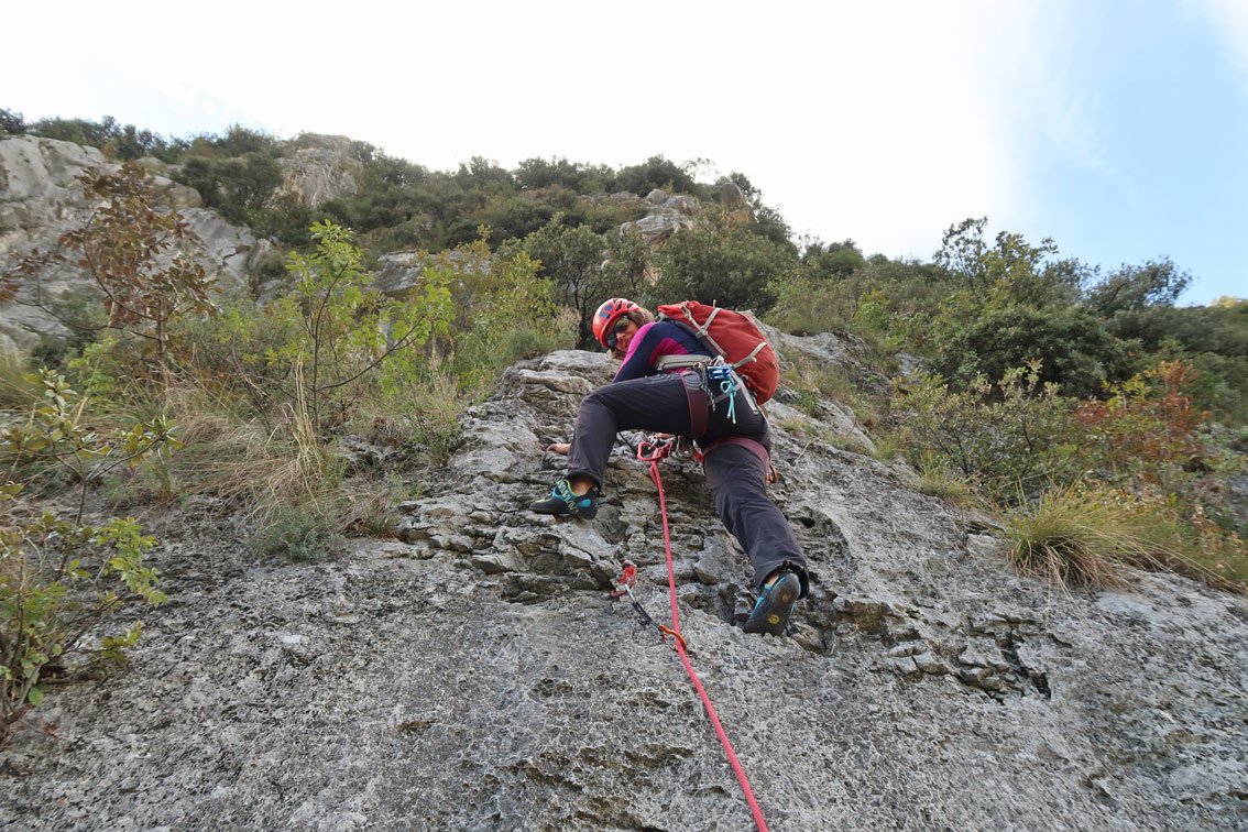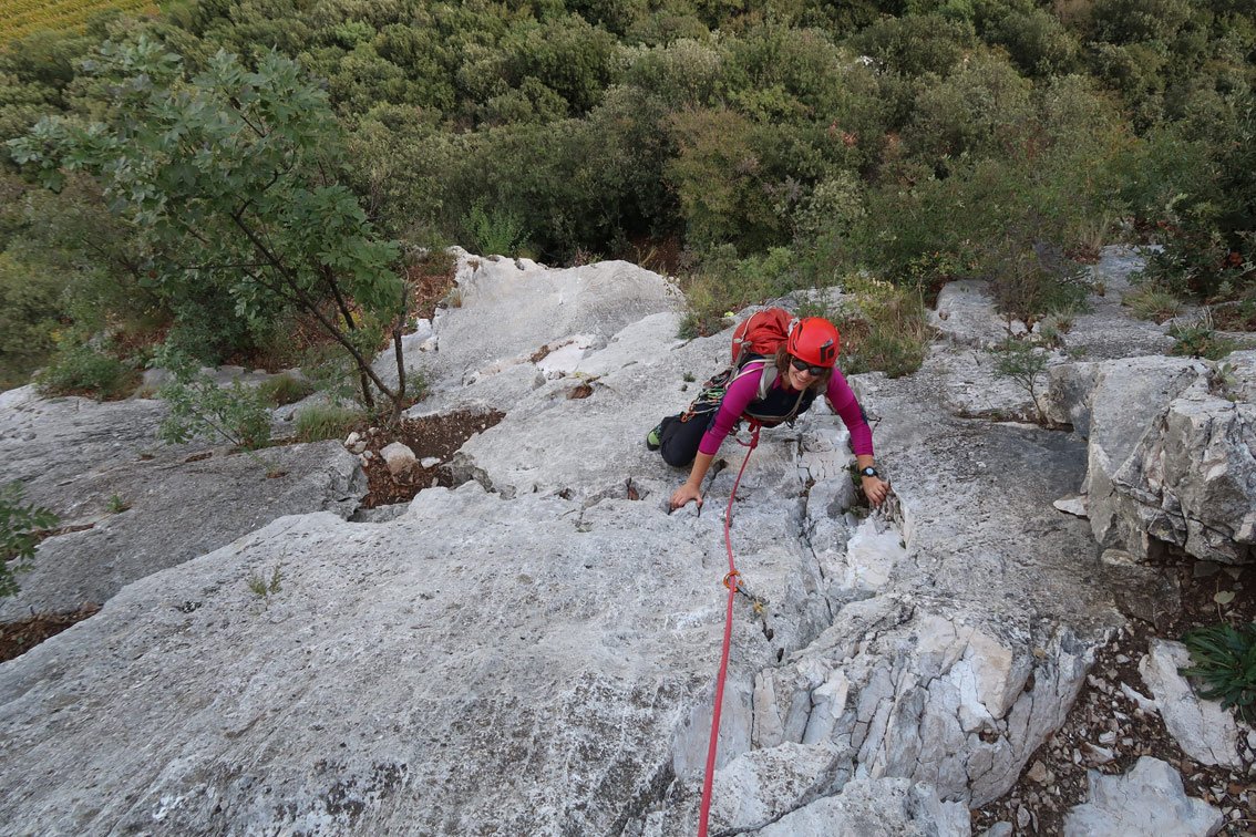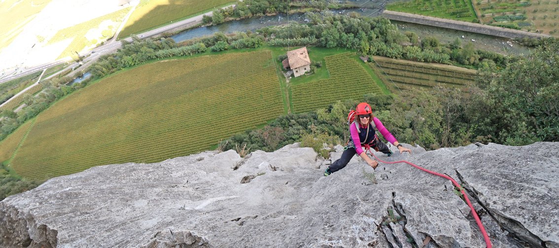 Wirklich schöne Kletterroute, die sich die besten Felspassagen neben der alten "Argo" Route sucht. Unten eine schöne Plattenrampe, in der Mitte ein griffiger Pfeiler und oben ein leicht überhängendes Finale mit großen Griffen - am Ende erreicht man auf einer schönen Ausstiegsplatte die Felskante und kann gemütlich zu Fuß absteigen. Kurze, aber lohnende Route die man auch als Zweitroute am San Paolofelsen anhängen kann.